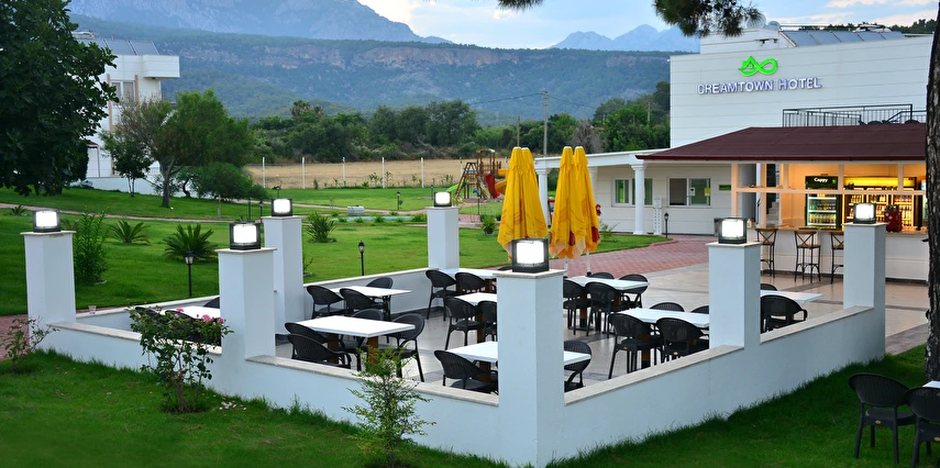 Antalya’nın doğası ve tarihî güzellikleriyle öne çıkan Tekirova’da bulunan Dream Town Hotel, geniş kullanım alanıyla öne çıkıyor. Tesis, gezginlerden balayı çiftlerine ve çocuklu ailelere kadar farklı kişilere hitap eden pek çok olanak sunuyor.