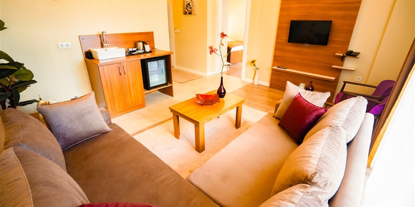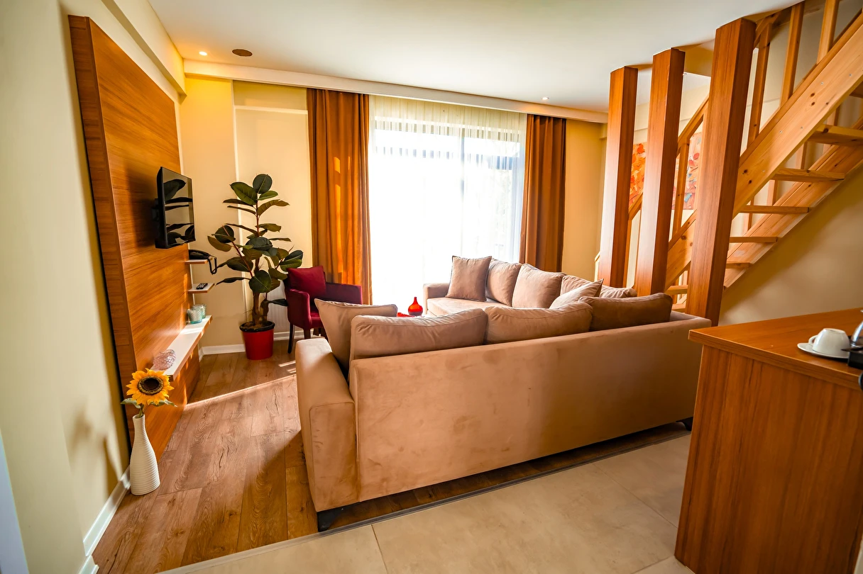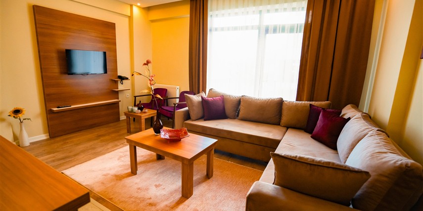 Konforlu dairelerimiz, aileye özel banyolarımız, termal havuzlarımız ve wellness hizmetlerimizle size sadece bir tatil değil; sağlık, huzur ve konforu bir arada sunuyoruz.