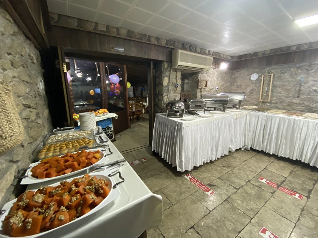 Ebrulu Konak, aynı anda 100 kişinin rahatça yemek yiyebileceği iki ayrı restorana sahiptir. Ana restoranı, 66 kişilik kapasitesi ile ferah bir ortam sunarken, Taş Restoran ismine sahip ikinci restoranı ise 34 kişilik kapasitesiyle sakin ve huzurlu bir atmosferde lezzetli yemeklerin tadını çıkarmanıza olanak tanır.
