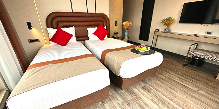 Otelin odaları ve süitleri, modern tasarım ve oryantal dokunuşlarla dekore edilmiş olup, parke zemin, klima, Wi-Fi ve çay/kahve hazırlama imkânı ile donatılmıştır.