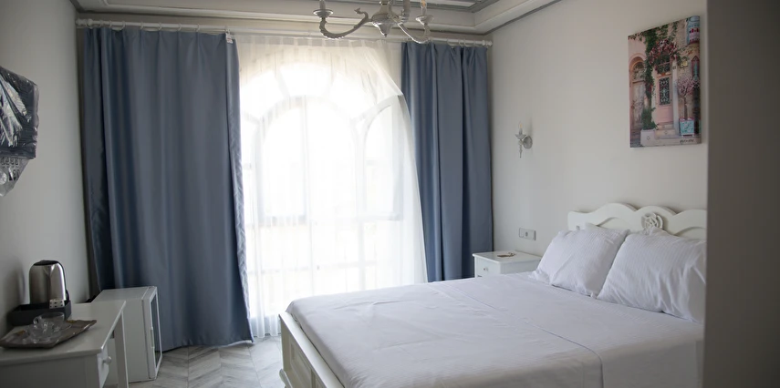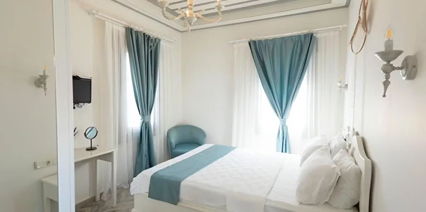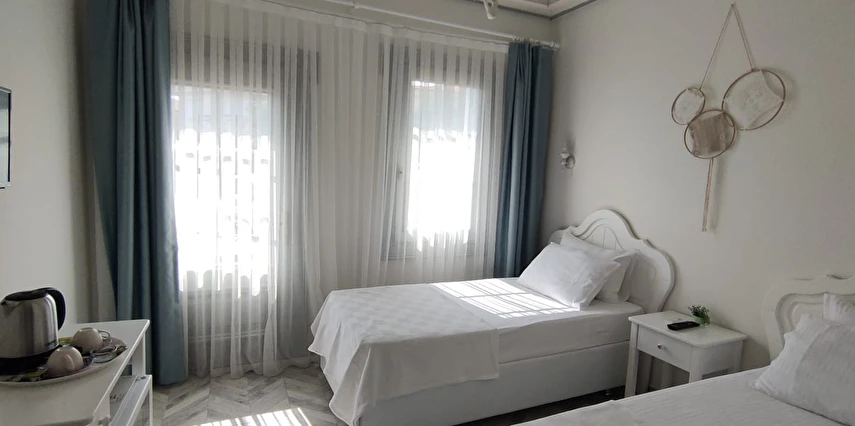Efruze Otel, Cunda Adası’nın en gözde konumunda denize sadece birkaç adım uzaklıkta yer alan sıcak ve samimi bir butik tesistir; her odada klima, ücretsiz Wi‑Fi, TV, mini bar ve balkon gibi konfor donanımları bulunur ve bir kısmı bahçe ile deniz manzaralıdır. Misafirler için her sabah özenle hazırlanan zengin açık kahvaltı, gününüze enerjik bir başlangıç yapmanızı sağlar. Otelin ücretsiz otopark imkânı ve bahçe & teras alanı ile dinlenme seçenekleri mevcuttur, ayrıca tesis Cunda çarşısına ve sahil yürüyüş yollarına yalnızca birkaç dakika yürüme mesafesindedir ideal konumuyla hem dinlendirici hem de keşif dolu bir tatil sunar. Güler yüzlü ekip, titiz temizlik ve huzurlu atmosfer ile Efruze Otel, Ege’nin eşsiz manzarası eşliğinde unutulmaz bir konaklama deneyimi yaşatır.