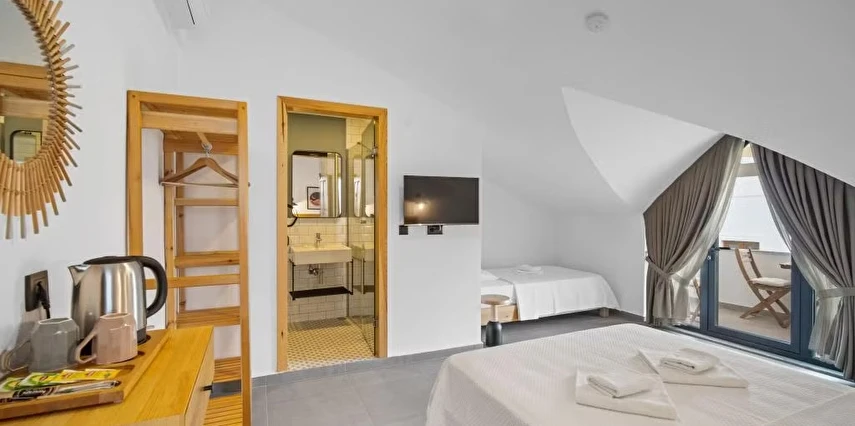 Otelimiz, 10 odalı ve kahvaltı konseptli bir butik oteldir. Odalarımız 2, 3 ve 4 kişi kapasitelidir ve her biri sade, ferah ve modern detaylarla tasarlanmıştır.