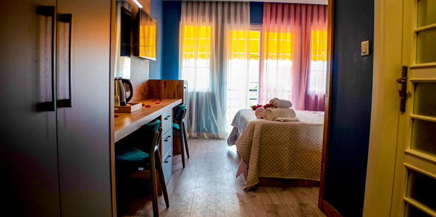 Tesisimiz 1 kat 7 oda 'dan oluşan butik oteldir tüm odalarımız kısmi deniz ve dağ manzaralıdır