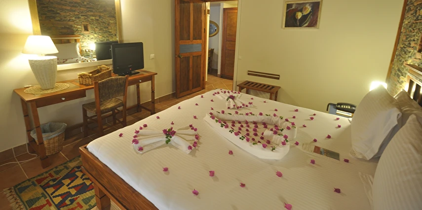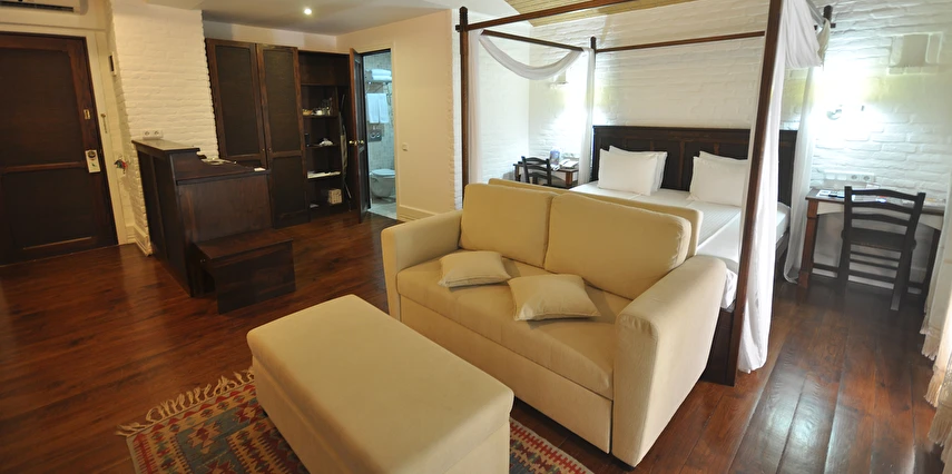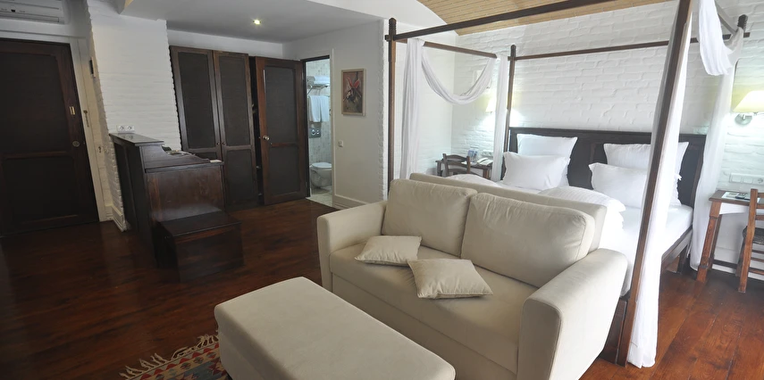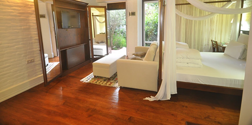 Tesisin odaları modern dekorasyonla döşenmiş olup, rahat yataklar, klima, düz ekran TV, minibar ve ücretsiz Wi‑Fi gibi olanaklarla donatılmıştır. Birçok oda balkon veya teras imkânı sağlayarak Bodrum’un eşsiz deniz ve şehir manzarasının keyfini çıkarmanıza olanak tanır. Bazı süitlerde geniş oturma alanları ve özel dinlenme köşeleri bulunur; bu da özellikle çiftler ve aileler için daha keyifli bir konaklama sunar.