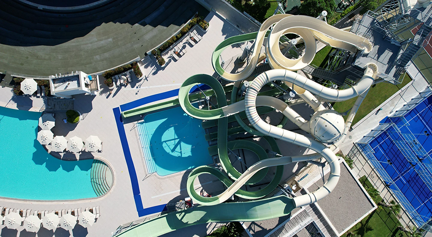 Havuzlar: Açık havuz alanı (6630 m2), 6 su kaydırağı, kapalı havuz (210 m2), kapalı çocuk havuzu (20 m2) 1 bebek havuzu, 1 çocuk havuzu, 1 çocuk su kaydırağı (246 m2). Tüm havuzlar tatlı sudur.