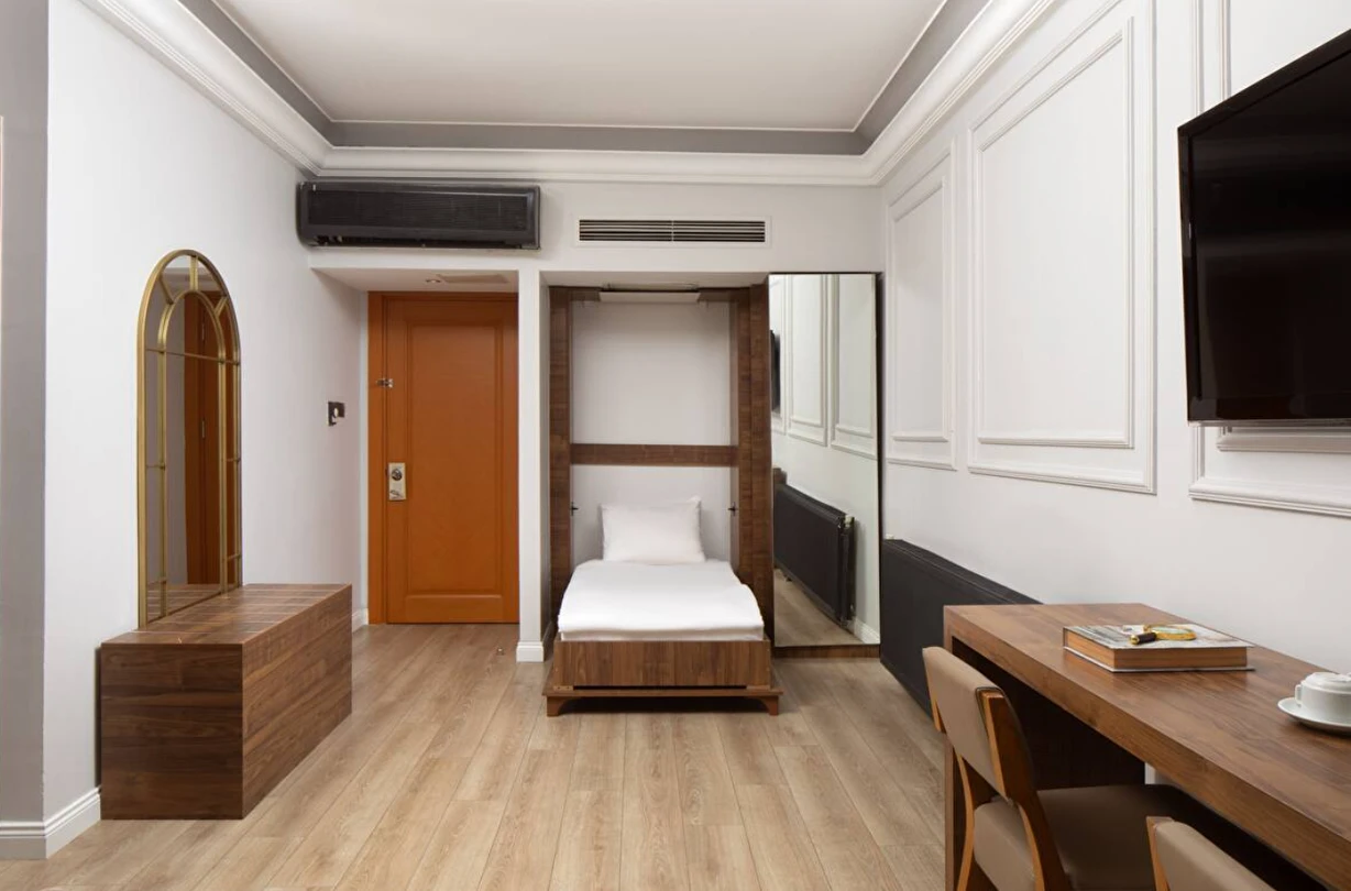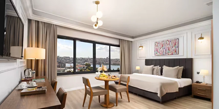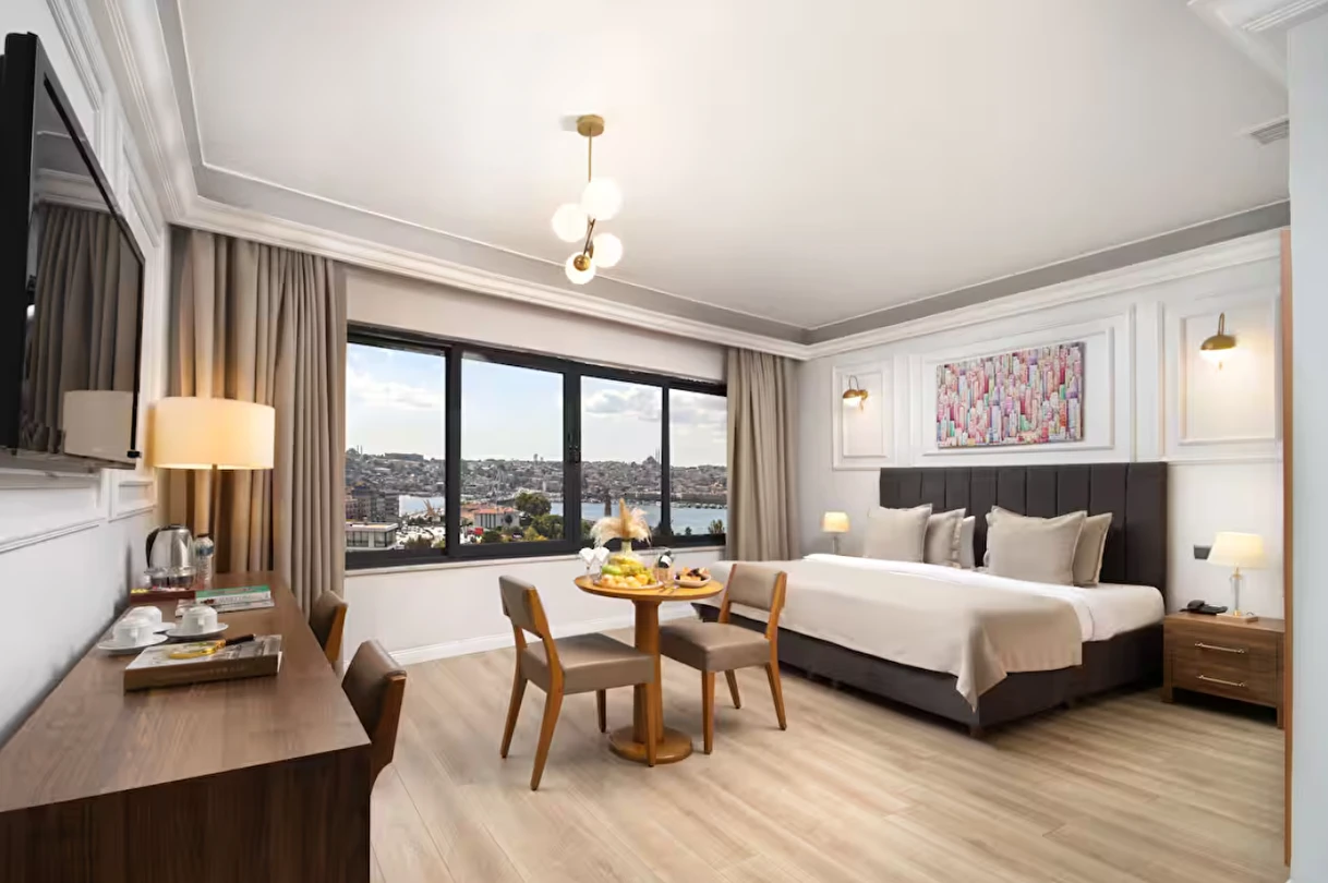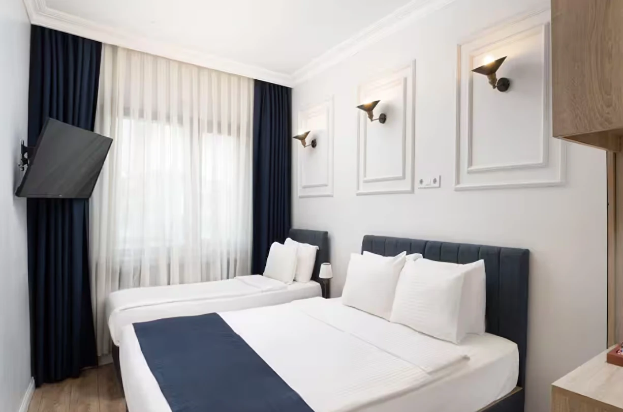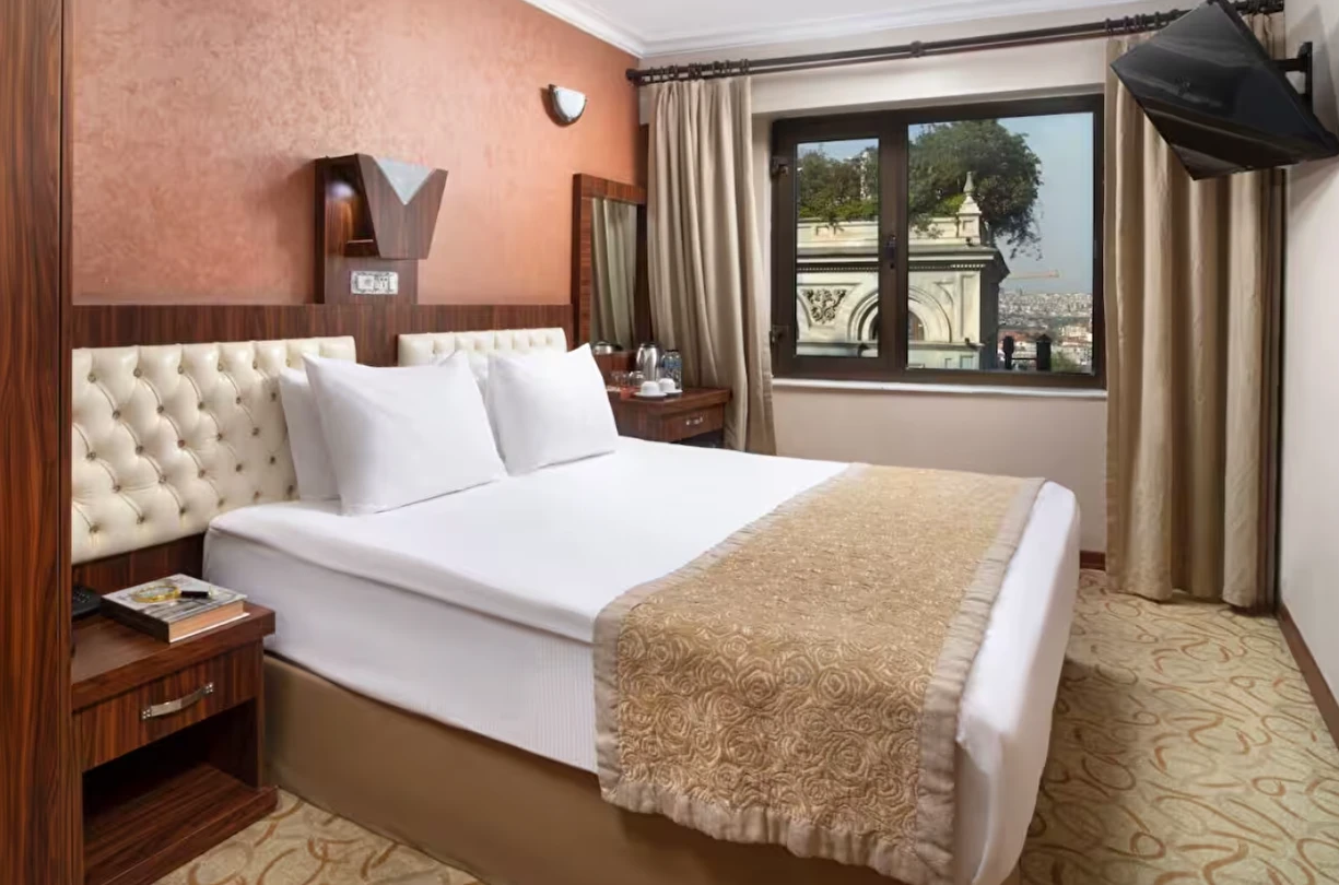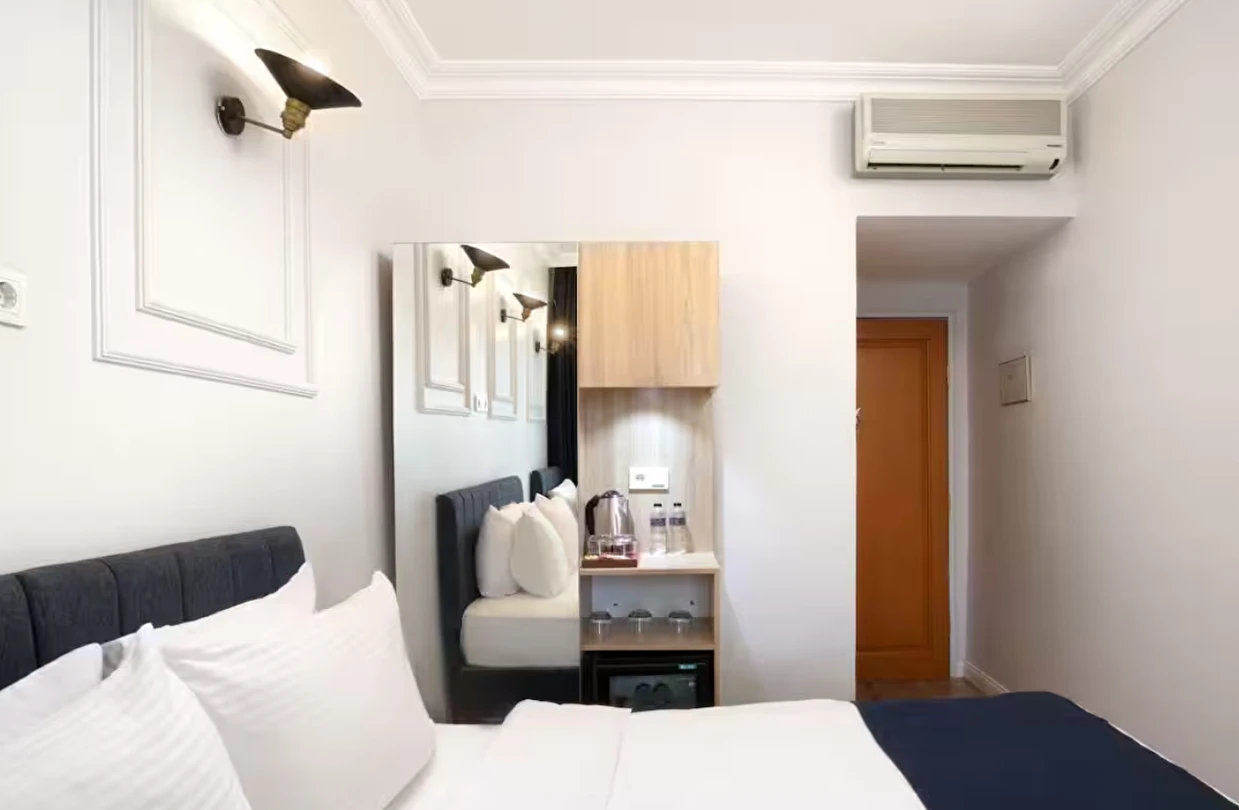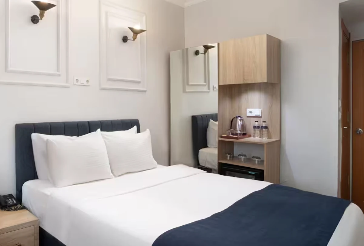 Elan Hotel Istanbul Pera, farklı ihtiyaçlara hitap eden oda tipleriyle konaklamayı kişiselleştirme imkânı sunar. Ekonomik çift kişilik odalar 15 m² büyüklüğündeyken, standart odalar 18–20 m² arasında değişir. Deniz manzaralı odalar şehri farklı bir perspektiften izleme imkânı sunarken, 40 m² büyüklüğündeki lüks suit odalar daha geniş ve ayrıcalıklı bir konaklama deneyimi sağlar. Üç kişilik deluxe odalar ise üç ayrı yatak seçeneği ile özellikle arkadaş grupları veya aileler için uygundur.