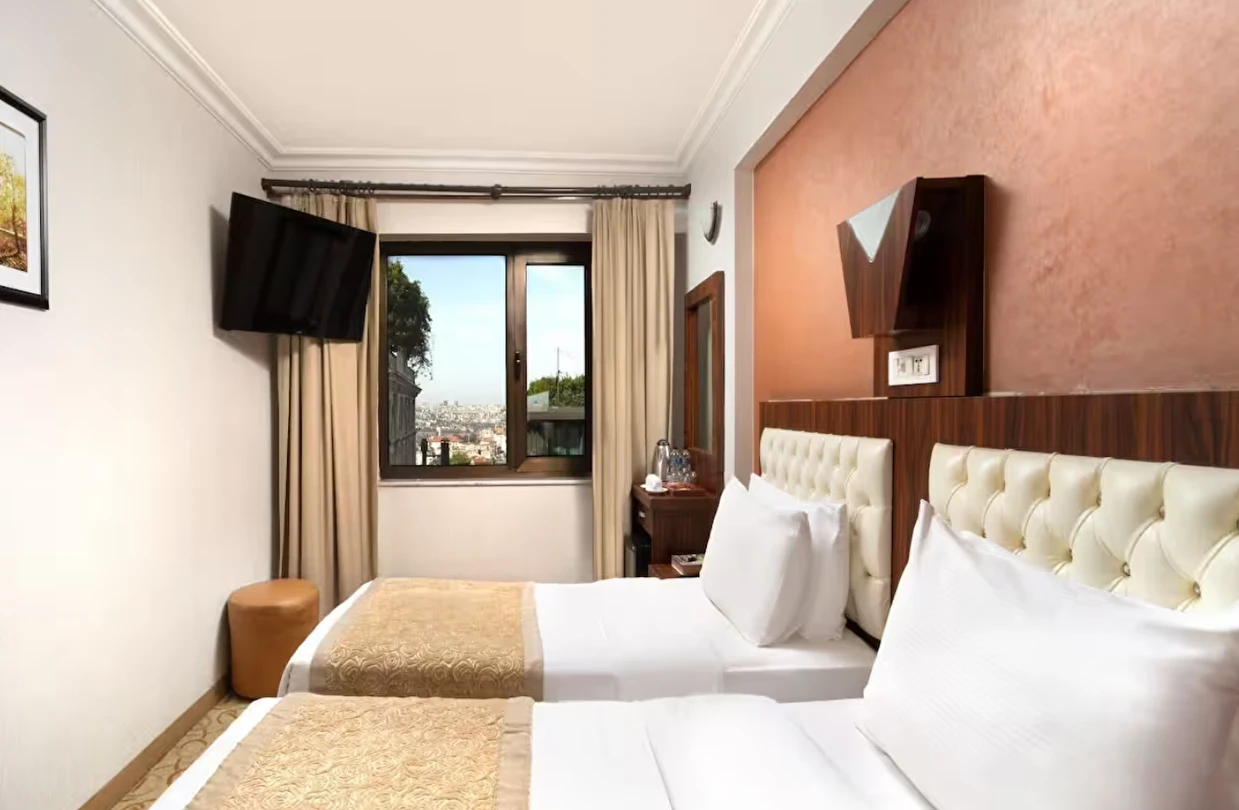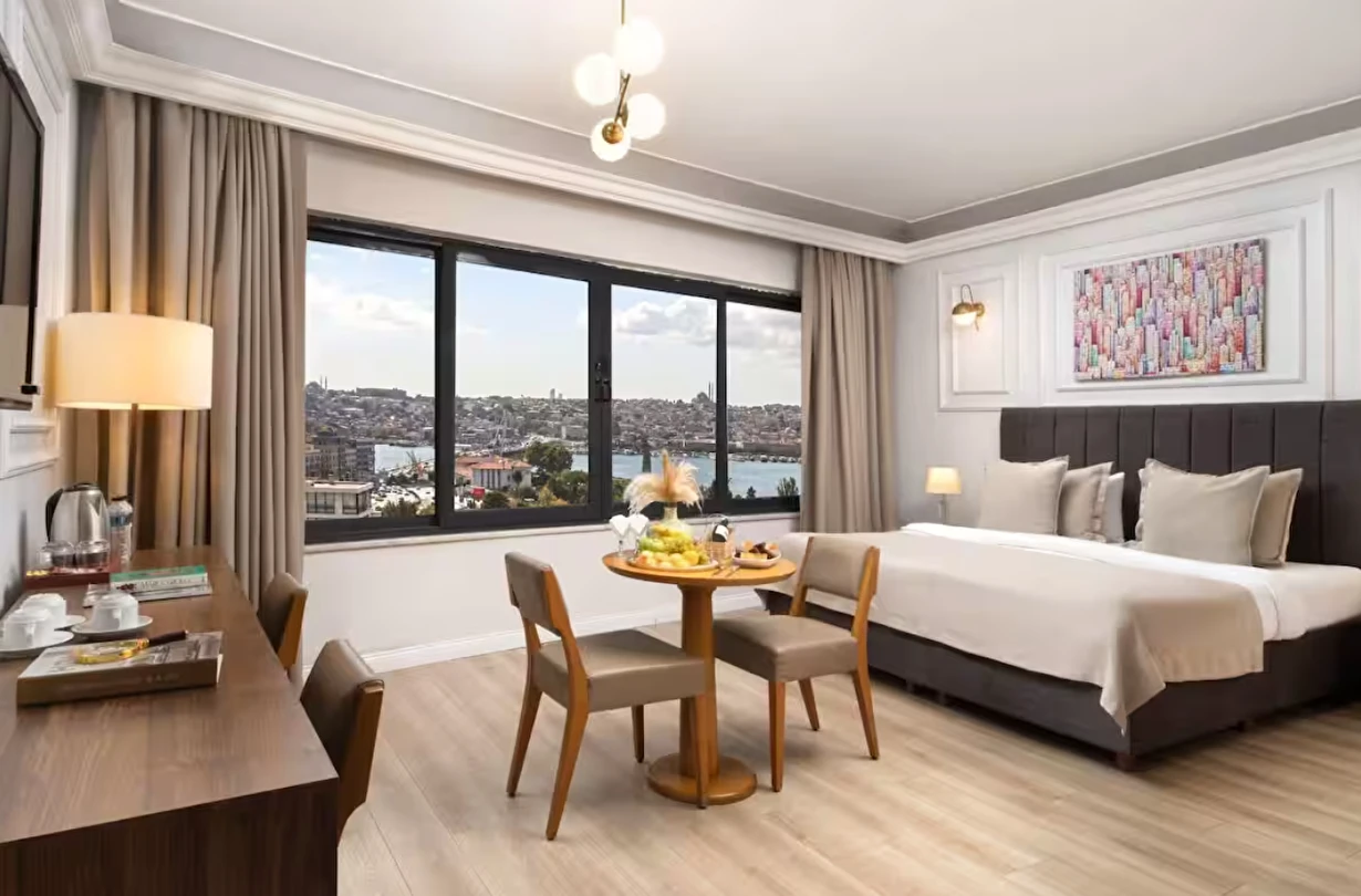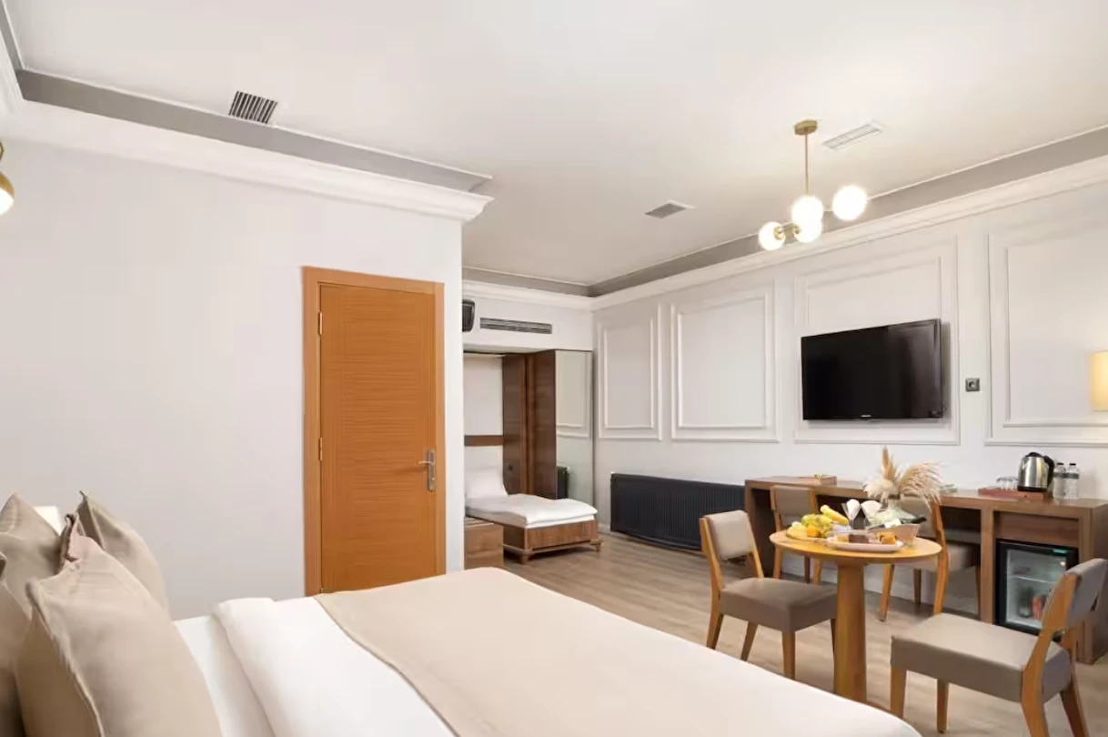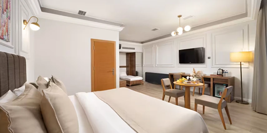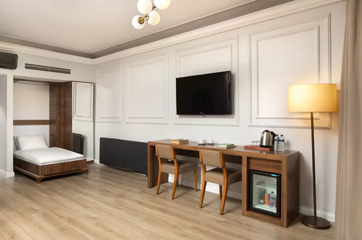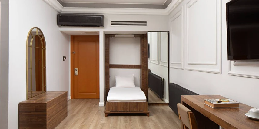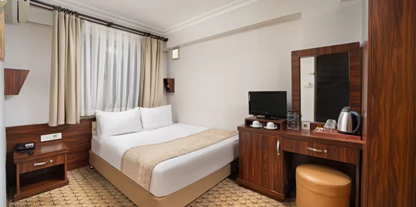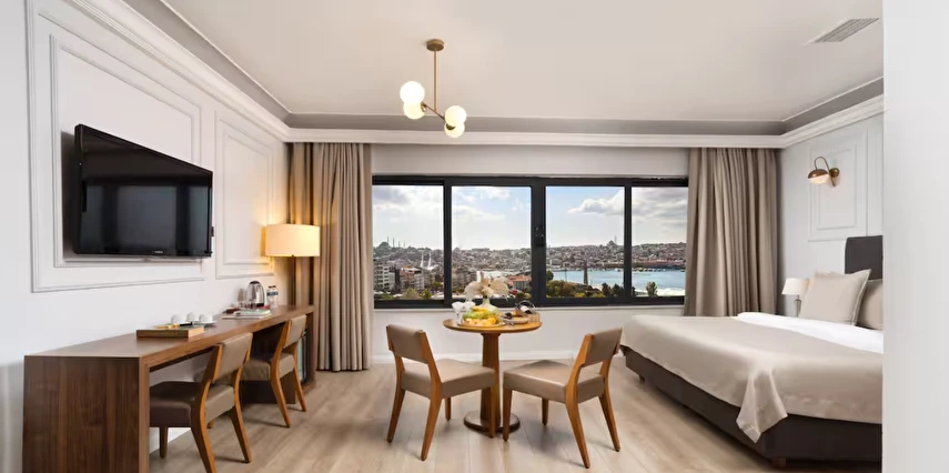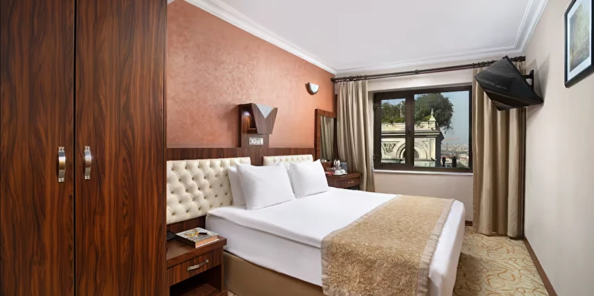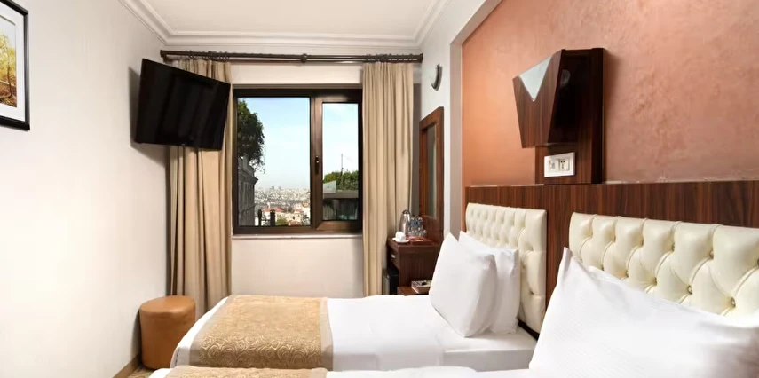 Elan Hotel Istanbul Pera, farklı ihtiyaçlara hitap eden oda tipleriyle konaklamayı kişiselleştirme imkânı sunar. Ekonomik çift kişilik odalar 15 m² büyüklüğündeyken, standart odalar 18–20 m² arasında değişir. Deniz manzaralı odalar şehri farklı bir perspektiften izleme imkânı sunarken, 40 m² büyüklüğündeki lüks suit odalar daha geniş ve ayrıcalıklı bir konaklama deneyimi sağlar. Üç kişilik deluxe odalar ise üç ayrı yatak seçeneği ile özellikle arkadaş grupları veya aileler için uygundur.
