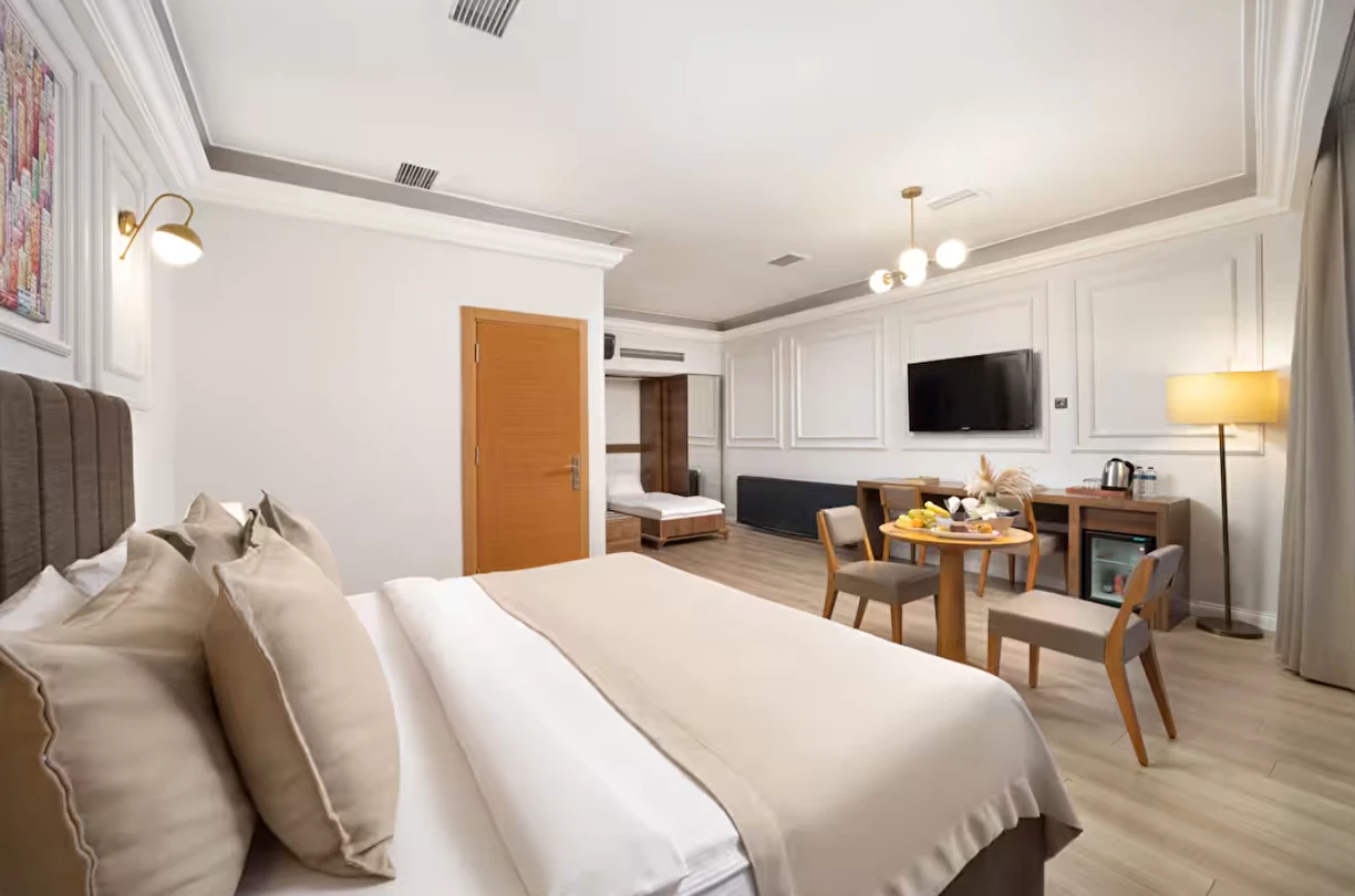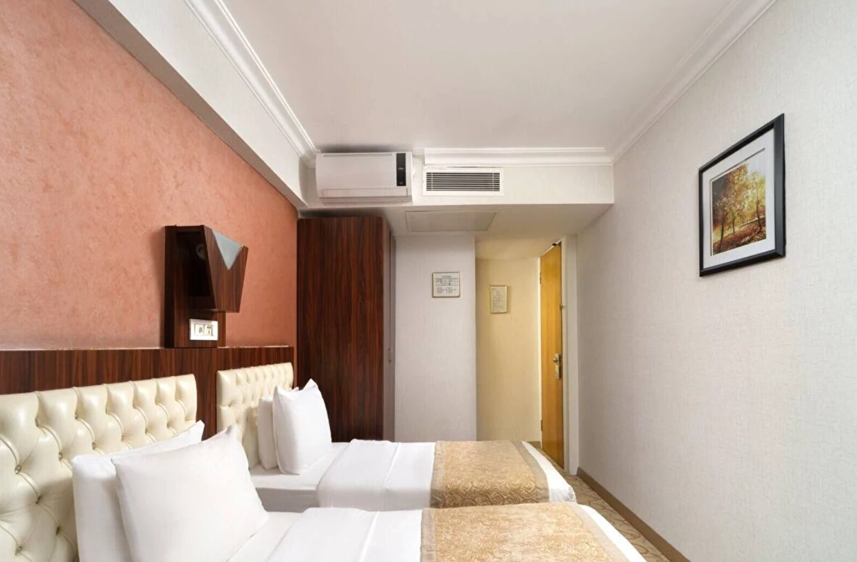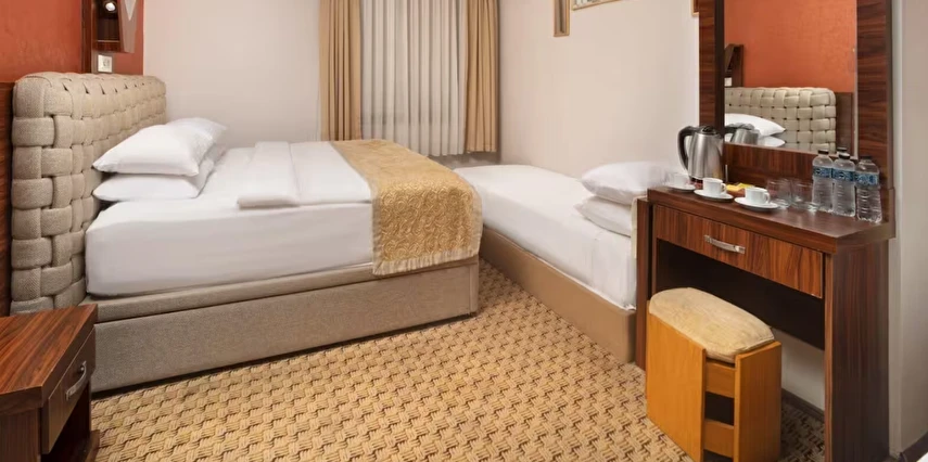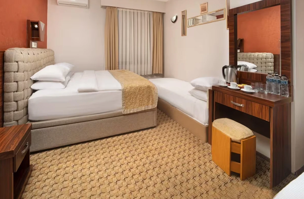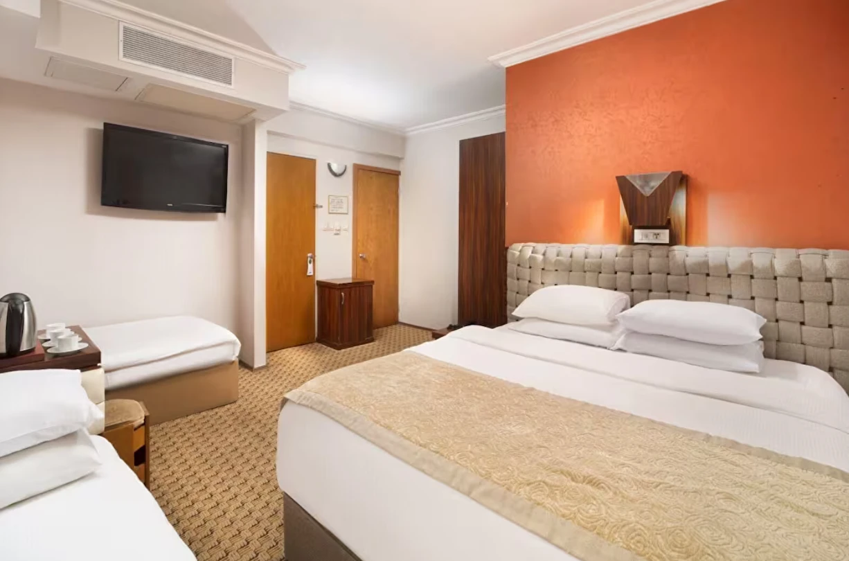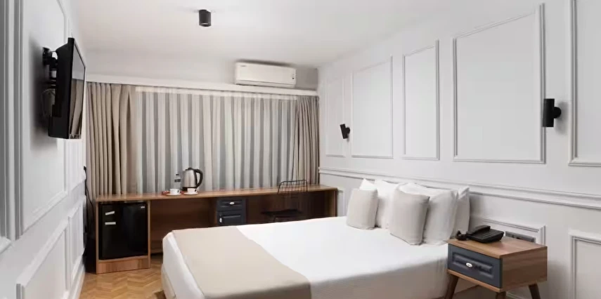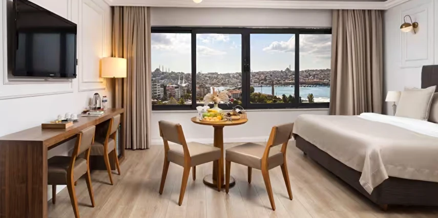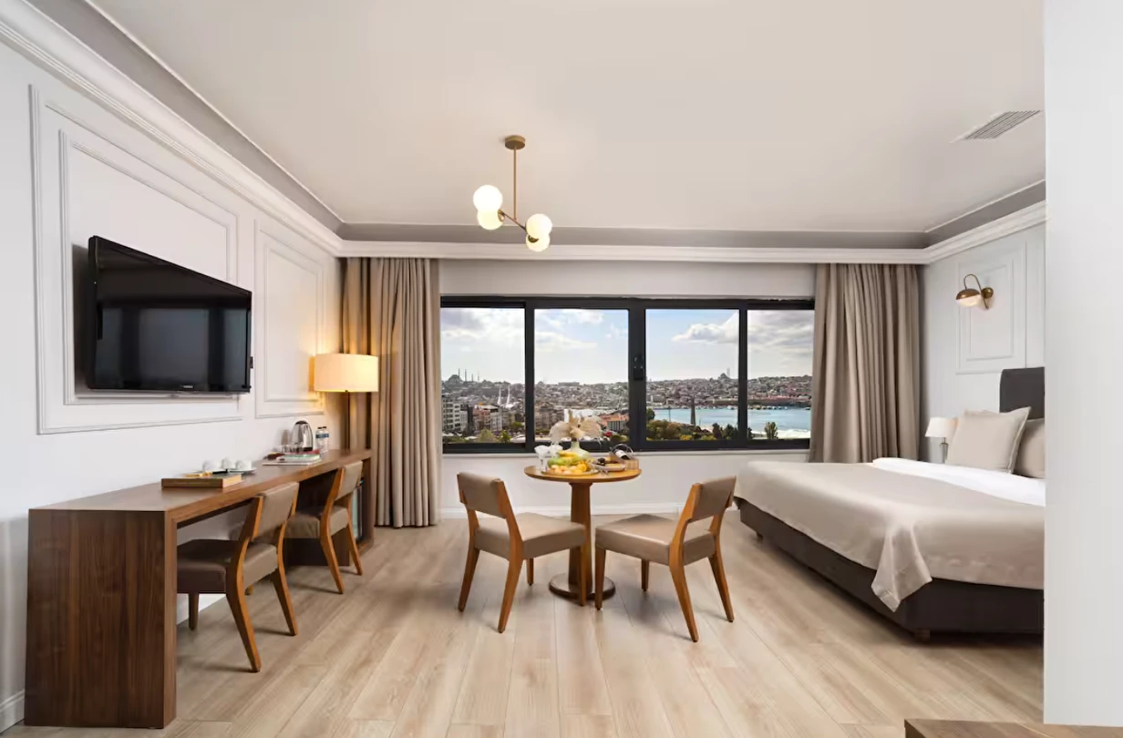 Elan Hotel Istanbul Pera, farklı ihtiyaçlara hitap eden oda tipleriyle konaklamayı kişiselleştirme imkânı sunar. Ekonomik çift kişilik odalar 15 m² büyüklüğündeyken, standart odalar 18–20 m² arasında değişir. Deniz manzaralı odalar şehri farklı bir perspektiften izleme imkânı sunarken, 40 m² büyüklüğündeki lüks suit odalar daha geniş ve ayrıcalıklı bir konaklama deneyimi sağlar. Üç kişilik deluxe odalar ise üç ayrı yatak seçeneği ile özellikle arkadaş grupları veya aileler için uygundur.