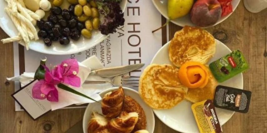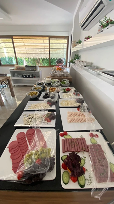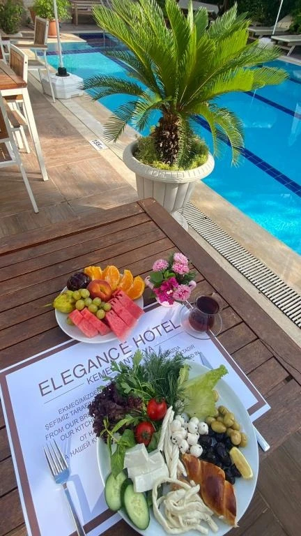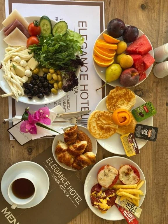 Elegance Hotel Kemer’de her sabah konuklara 08.00 ile 11.00 saatleri arasında havuz başında açık büfe kahvaltı servis ediliyor. Öğle ve akşam yemeklerinde ise hem açık hem de kapalı restoran imkanı sunuluyor. Bunun yanı sıra konuklar otelde gün boyu çay ve kahve içebiliyor ve odaya yemek servisi talep edebiliyor.