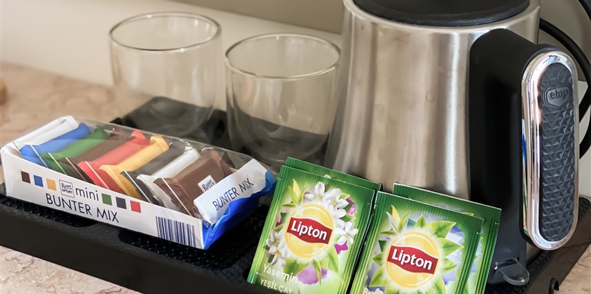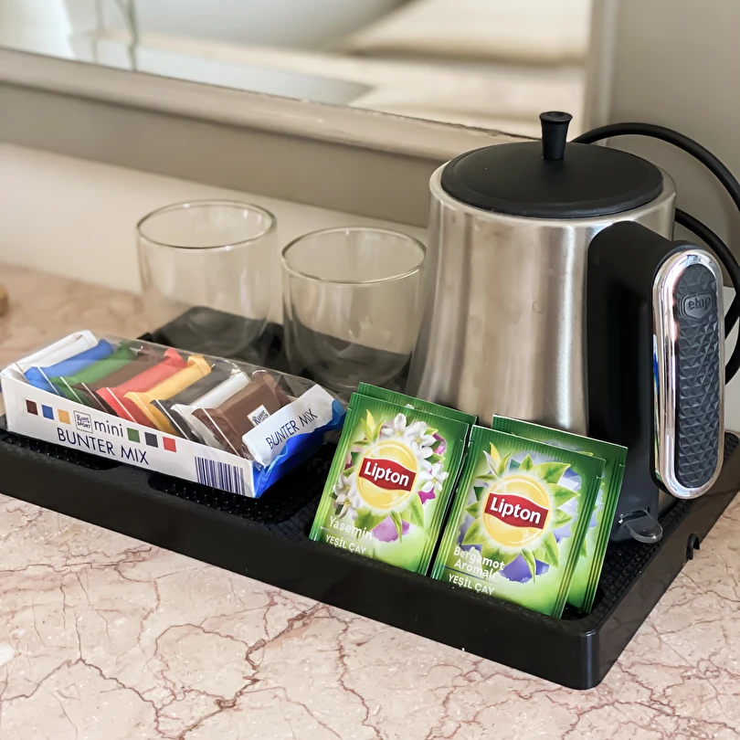 Odalarda, ısıtma, klima, emanet kasası, Wi-Fi, TV, uydu kanalları, gardırop, banyo malzemeleri, havlu seti, balkon, mini bar, elektrikli su ısıtıcısı, ütü bulunmaktadır.