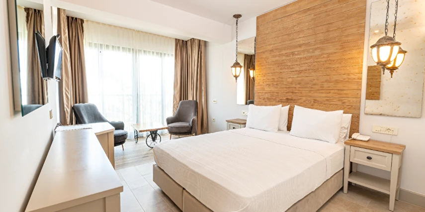 Misafirlerimize özel iskelemizde, leziz yiyecek ve içecekler eşliğinde, mavi bayraklı denizin tadını çıkarabileceğiniz keyifli bir tatil sizleri beklemektedir. Otelimiz, aynı zamanda, siz değerli misafirlerine yüzme havuzu ve Spa & Wellness merkezinde hamam, sauna ve masaj hizmetleri de sunmaktadır.