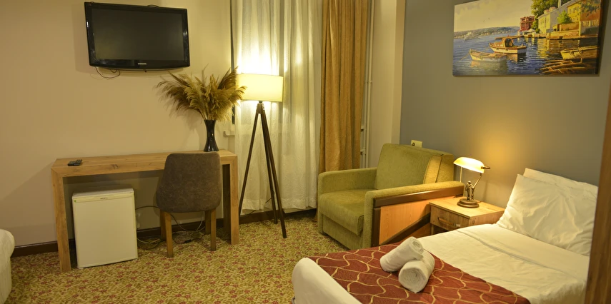 Daha Fazla GösterTESİSİMİZ BOLU ŞEHİR MERKEZİNDE ÇARŞI İÇERİSİNDE RESTURANT, CAFE VE EĞLENCE MEKANLARINA EN YAKIN KONUMDA BULUNMAKTADIR. 0374 218 04 00 NUMARALI TELEFONDAN DETAYLI BİLGİ ALABİLİRSİNİZ. ŞEHİR MERKEZİNDE HER YERE YÜRÜME MESAFESİNDE ULAŞABİLİRSİNİZ. ODALARDA SAÇ KURUTMA MAKİNESİ, LED TV, MİNİBAR , MASA, DOLAP VE YERLER SAMUR HALI KAPLI KALİTELİ MALZEMELERDEN OLUŞAN KALİTELİ BİR TASARIMA SAHİP OLUP SABAH ZENGİN AÇIK BÜFE KAHVALTI MENÜMÜZLE SİZ MÜŞTERİLERİMİZE HİZMET ETMEKTEYİZ.