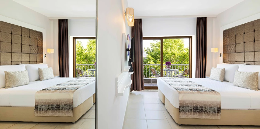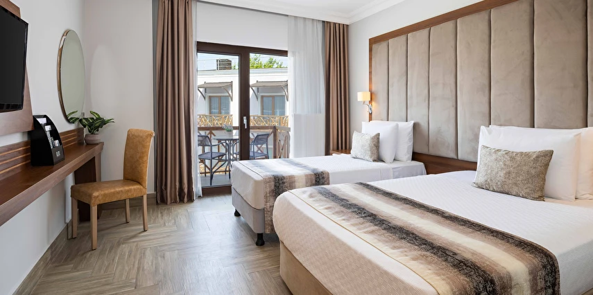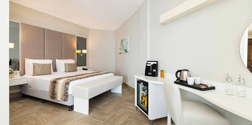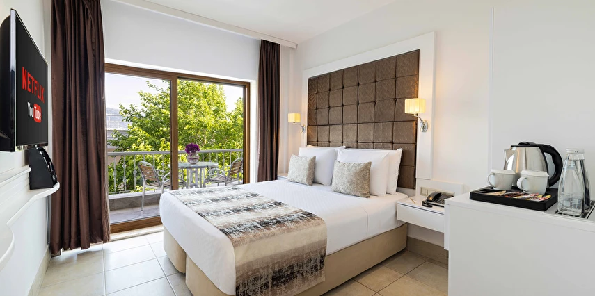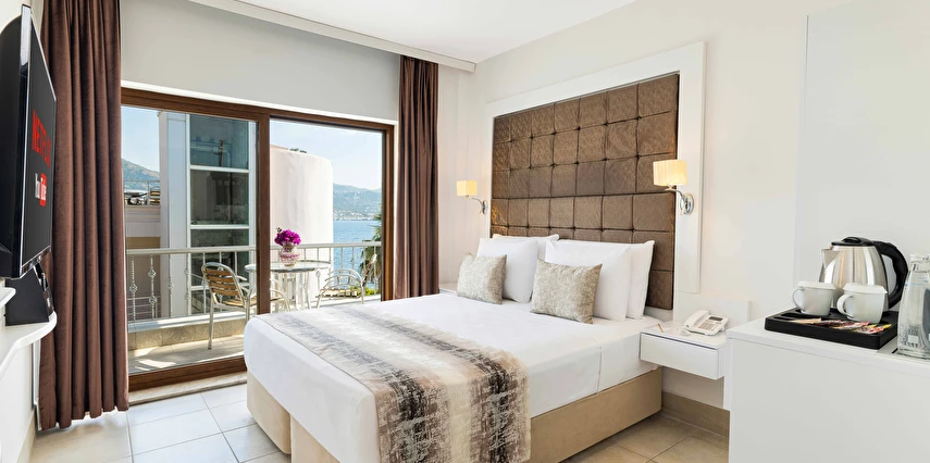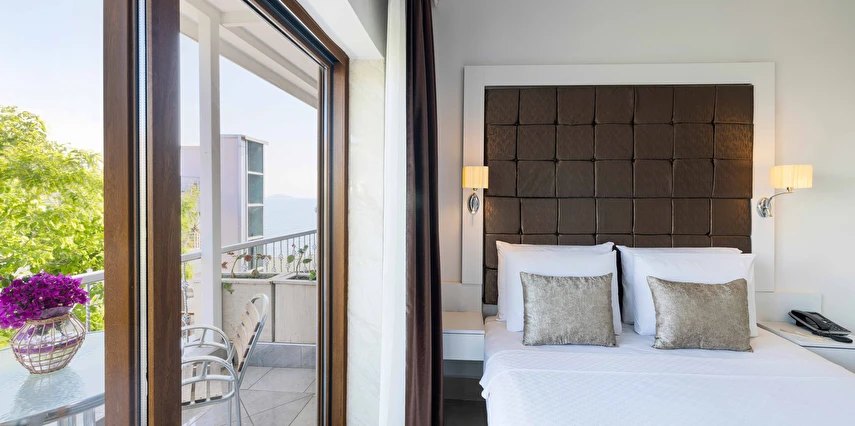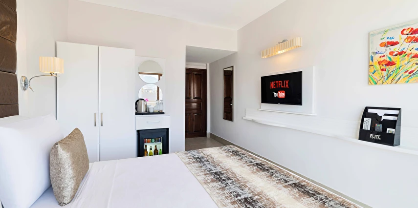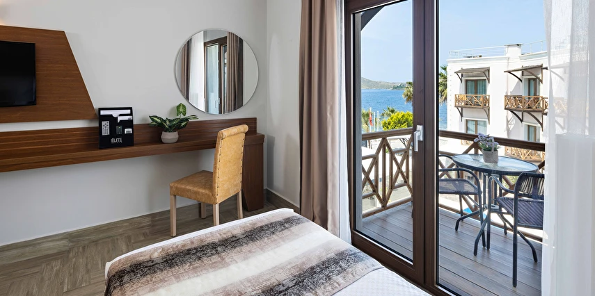 Elite Hotel Bodrum’da deniz manzaralı, bahçe ve havuz açılan balkonlu veya teraslı ferah odalar mevcuttur. Ev konforu yaşamak isteyen misafirler için 1+1 ve 2+1 mutfaklı suit odalar iyi bir seçenektir.