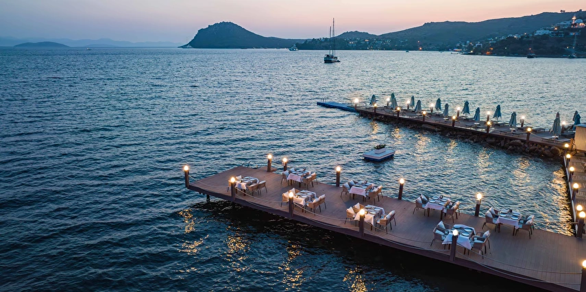 Gün boyu restoran ve barda ,akşamları ise iskele üzerinde bulunan A La Carte restoranında Yalıkavak’ın muhteşem manzarasının tadı seçkin lezzetler eşliğinde çıkarılabilir.