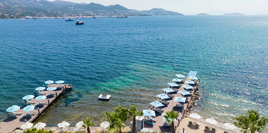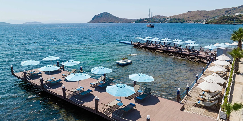 Yalıkavak’ta denize sıfır konumlanan tesis iki adet iskelesinde ve plajında güneş & deniz tutkunu misafirlere keyifli bir ortam sunmaktadır.