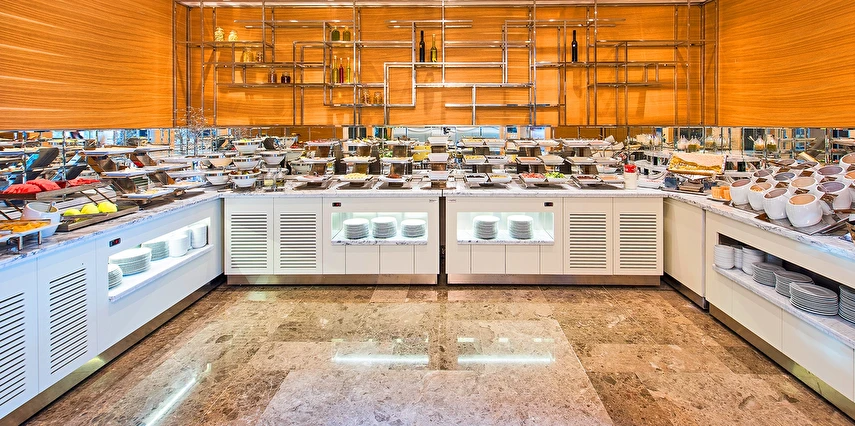 Her Şey Dahil konseptinde; Sabah kahvaltısı, öğle ve akşam yemekleri açık büfe olup, tesisin belirlemiş olduğu markalar dahilinde yerli alkollü ve alkolsüz içecekler 10:00 - 00:00 arasında ücretsizdir.