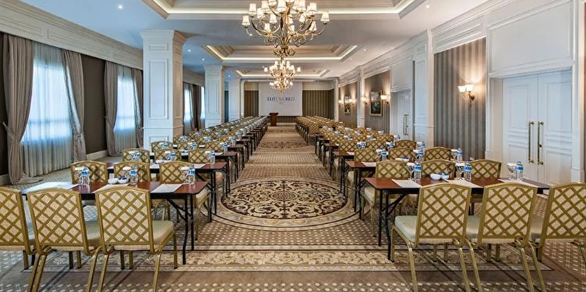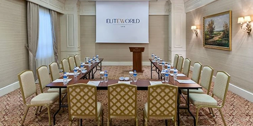 Van'da hizmet veren Elite World Van, saray tarzı iç tasarım ile bir araya getirilmiş neoklasik bir mimariye sahiptir. Otel, ücretsiz Wi-Fi erişimi sunar. Tesis bünyesindeki spa merkezinde hamam, sauna ve kapalı havuz yer alır. Zarif odalar klima, LCD TV ve minibar ile donatılmıştır. Ses yalıtımlı odaların tamamında özel bir banyo mevcuttur. Şık restoranda Türk ve dünya mutfaklarından lezzetler servis edilmektedir. Coffee Company'de kahve eşliğinde lezzetli kekler sunulmaktadır. Otelde alkollü içecek servisi mevcuttur. Tesiste tam donanımlı bir fitness merkezi de yer almaktadır. Konuklar, egzersiz sonrasında buhar banyosuna girebilir veya masaj yaptırabilirler. Toplantı salonu da vardır.