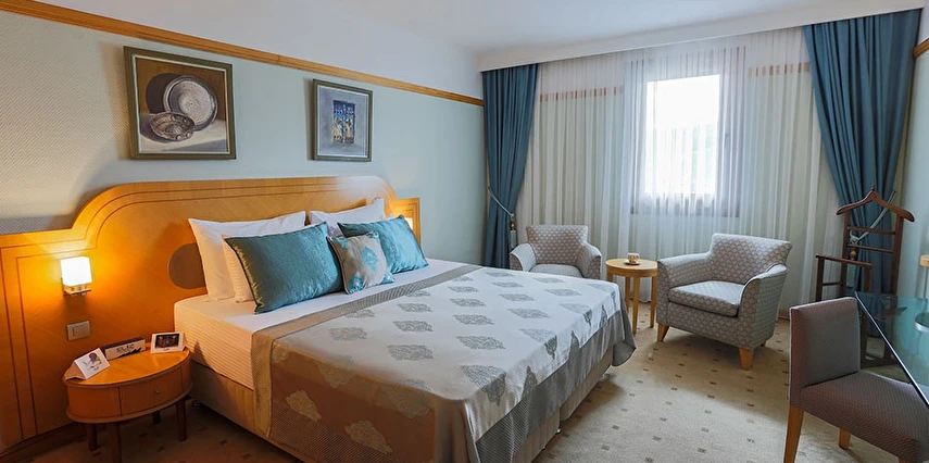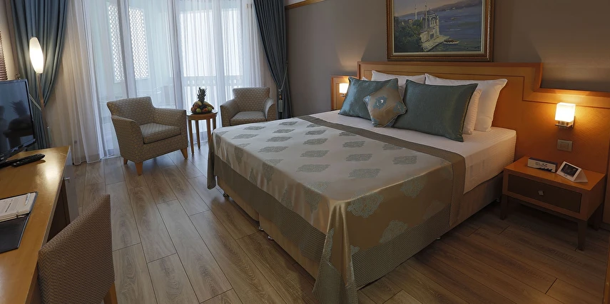 Şık ve konforlu olarak tasarlanan odalarda misafirlerin tüm ihtiyaçları düşünülmüştür: