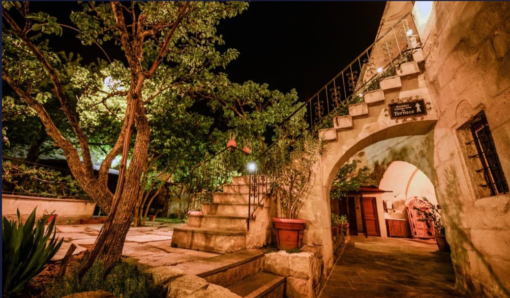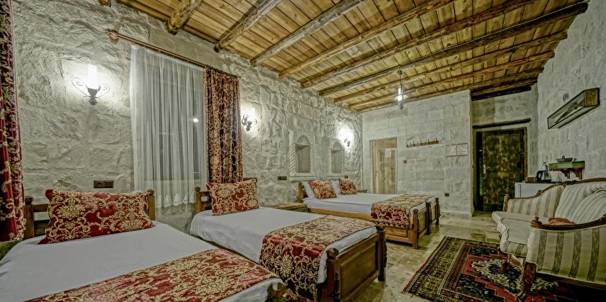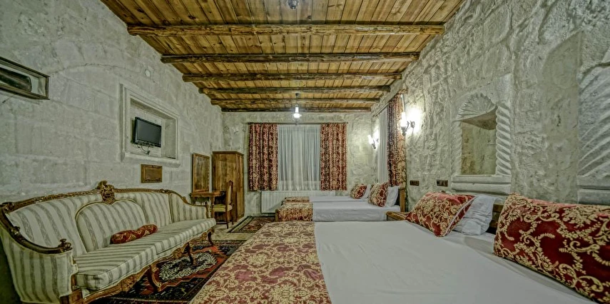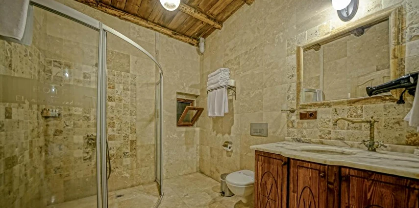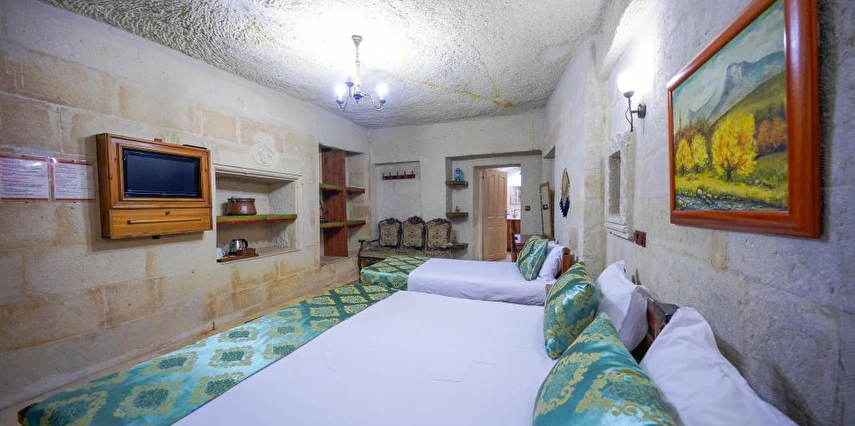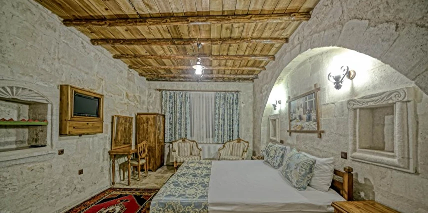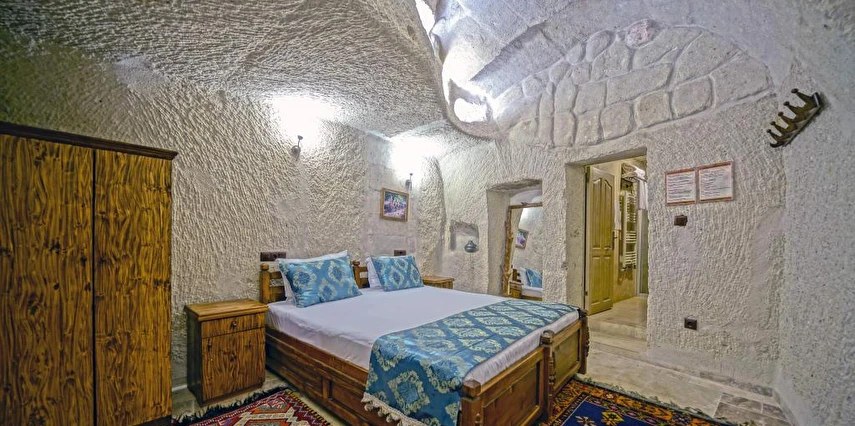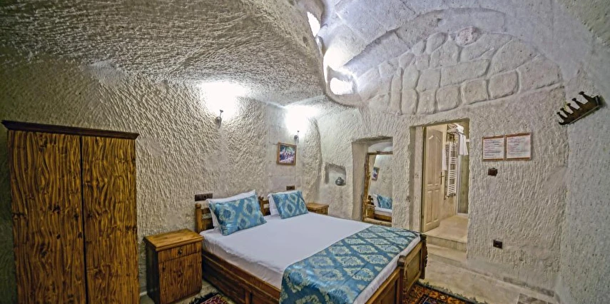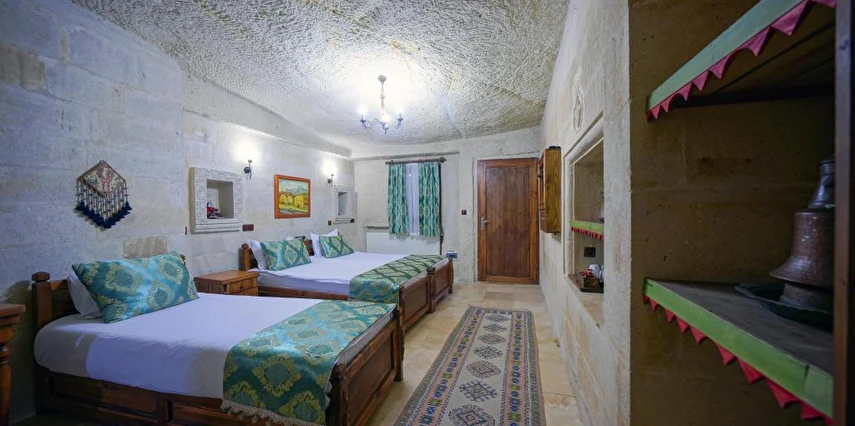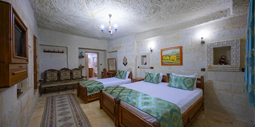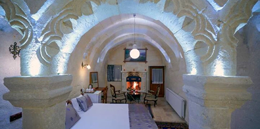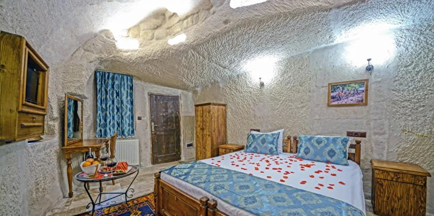 Kayanın içine oyulmuş tarihi bir köy evi olan Elysee Cave House Hotel, muhteşem bir panoramik manzaraya sahip. Yerel taşlarla restore edilen tesisin tüm odaları kaloriferli ve banyolu. Odaların birçoğundan peri bacaları ve vadi manzarasını izleyebilirsin. Misafirlere sunulan hizmetler arasında kablosuz internet bağlantısı, ortak TV alanı, 24 saat resepsiyon, tesise ait otopark, teras, kütüphane, çamaşırhane, araba kiralama servisi, ütü servisi, havaalanı servisi ve hiking gibi olanaklar bulunuyor. Terasta bulunan Belvedere Restaurant’ta akşam yemeği yiyebilirsin. Otantik atmosferinde keyifli vakit geçirebileceğin tesis, Uçhisar Kalesi, Göreme Milli Parkı ve Roma Kalesi gibi turistik yerler yakın konumda yer alıyor. Elysee Cave House yerel taşlarla restore edilmiş, kayanın içine oyulmuş muhteşem güzellikte tarihi bir köy evidir. Armut ağaçlarının gölgesinde rahatlatıcı bir gül bahçesinin yanı sıra muhteşem panaromik manzaraya sahiptir. Tesis 18 odalıdır. Kayaya oyulmuş tarihi bir köy evi olan Elysee Cave House, güler yüzlü hizmeti, mağaralara oyulmuş taş odaları ve büyüleyici manzarasıyla misafirlerine keyifli bir tatil imkanı sunuyor.