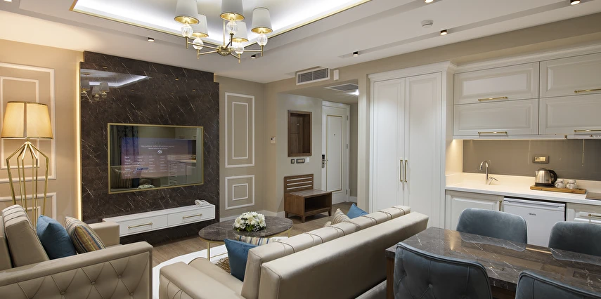 Ayrıcalıklı Konaklama: Standartların ötesinde, her ihtiyaca hitap eden geniş süit daireler.