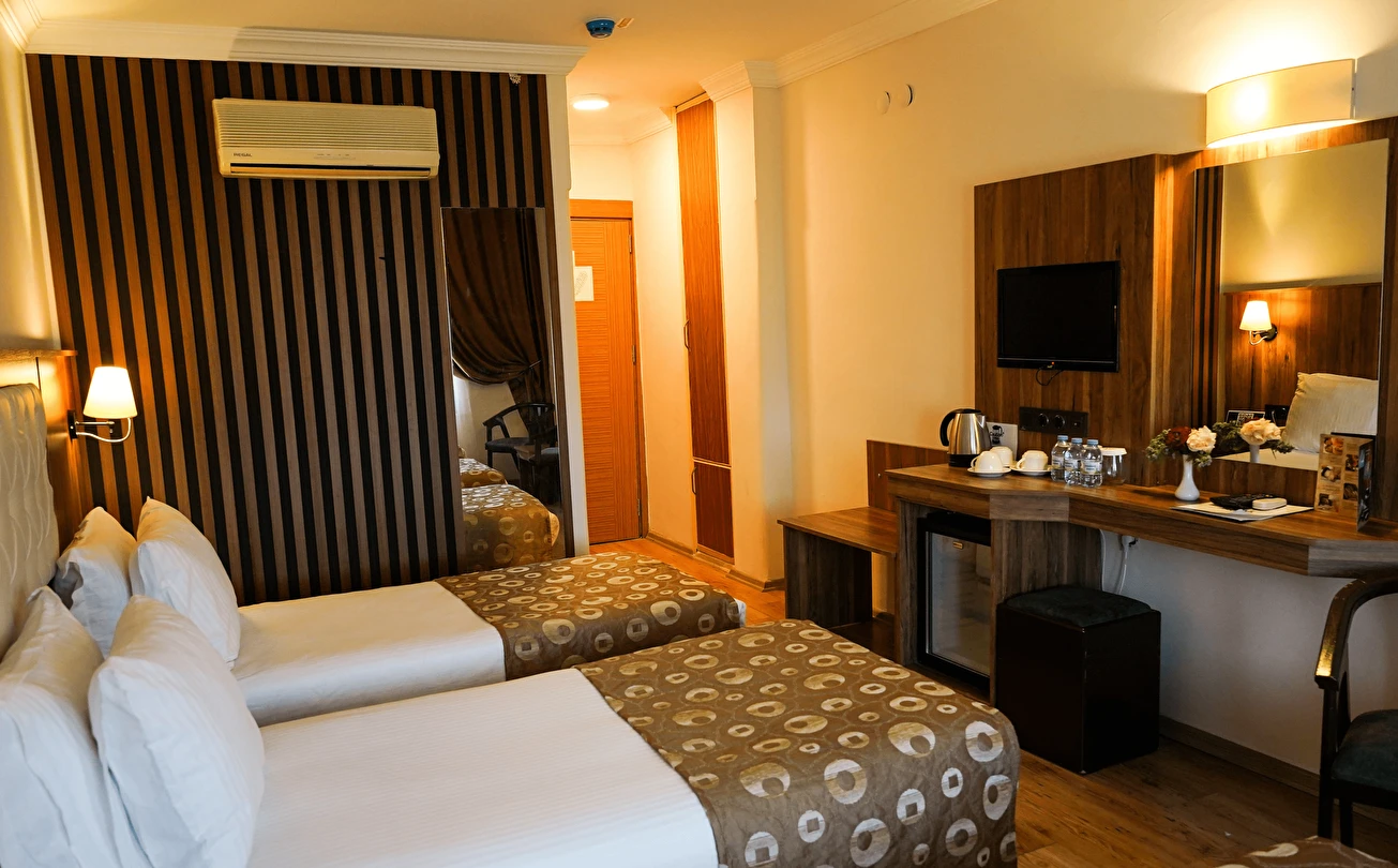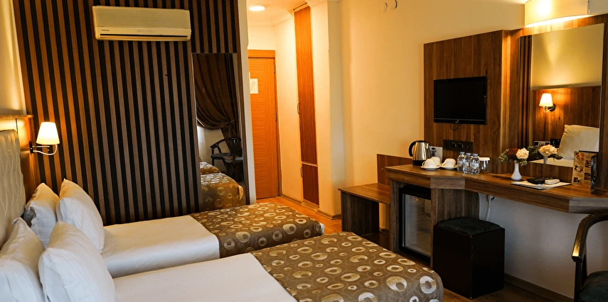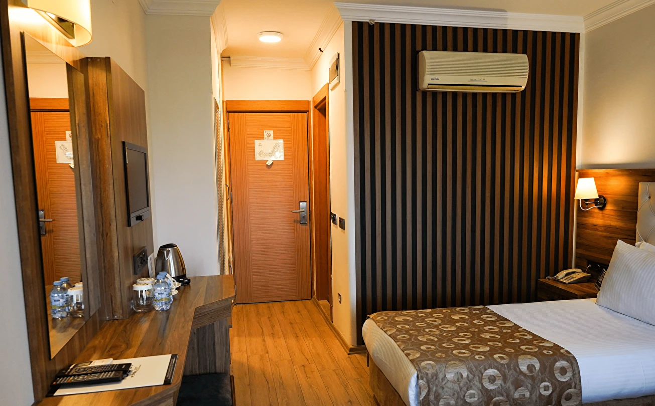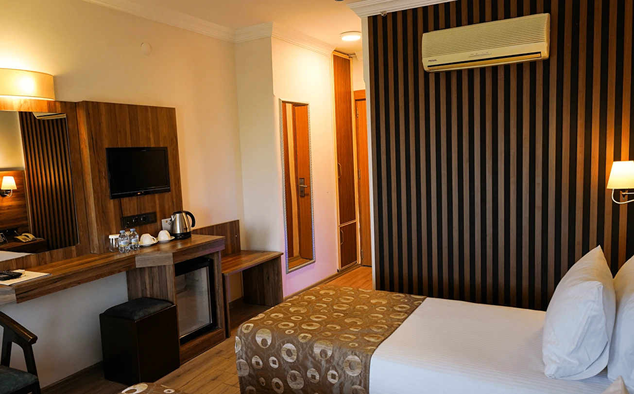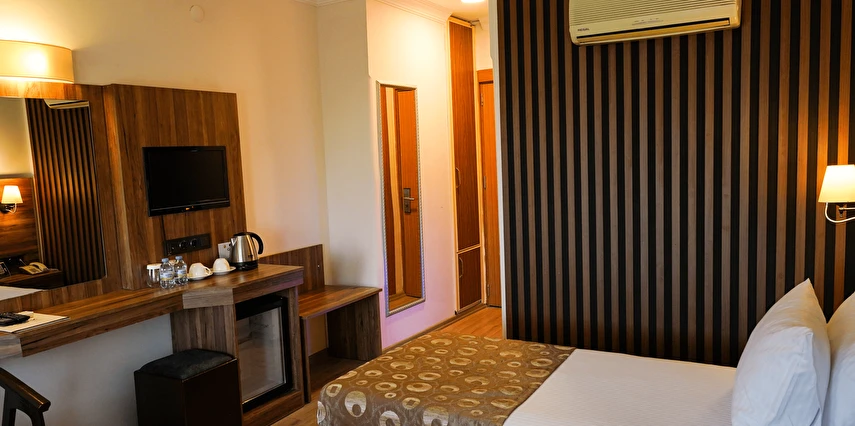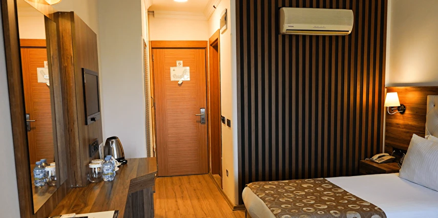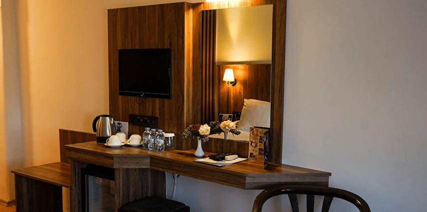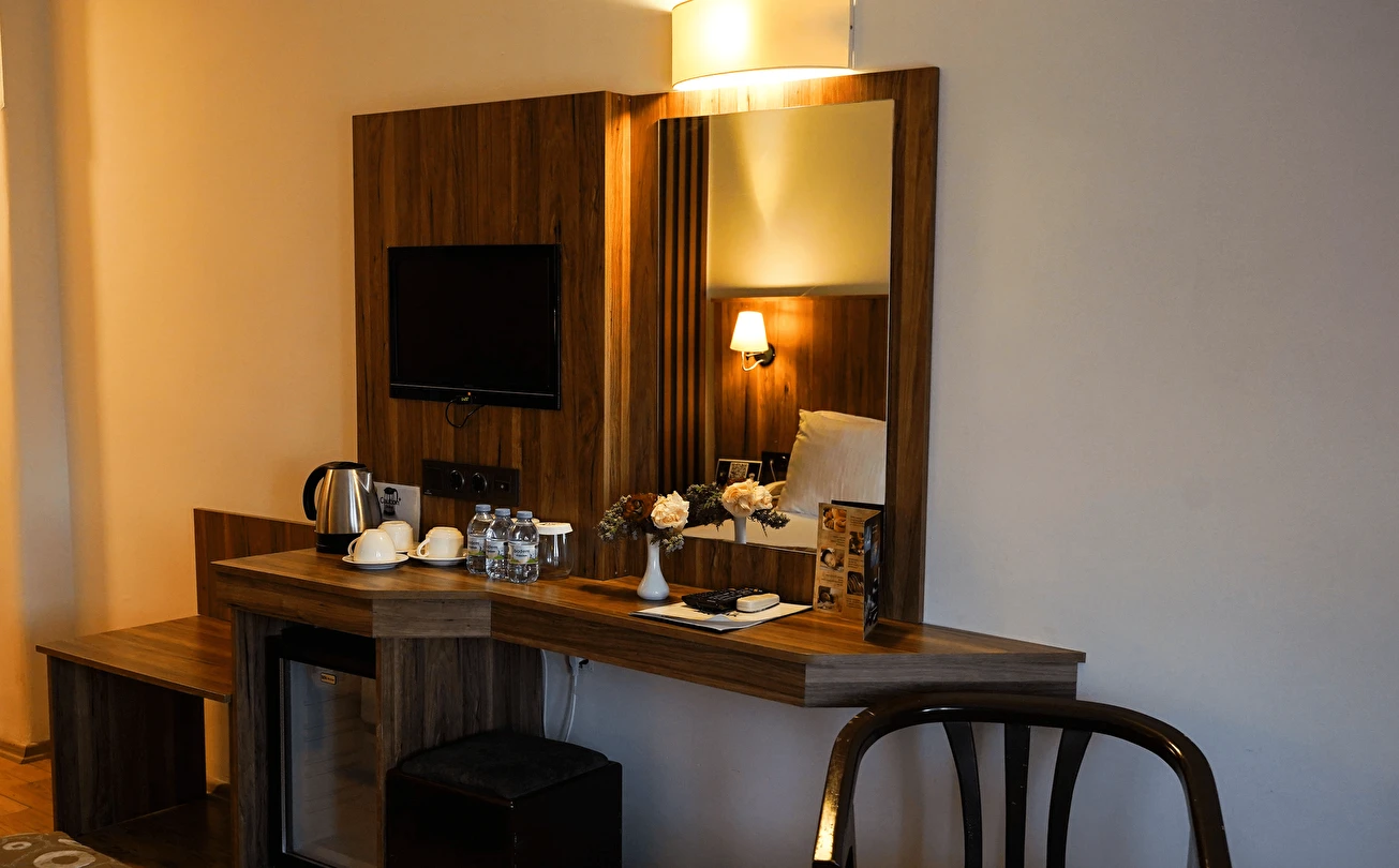 Tüm odalarda çay/kahve, kettle setup ve yanında oda başı günlük 2 su ücretsizdir.