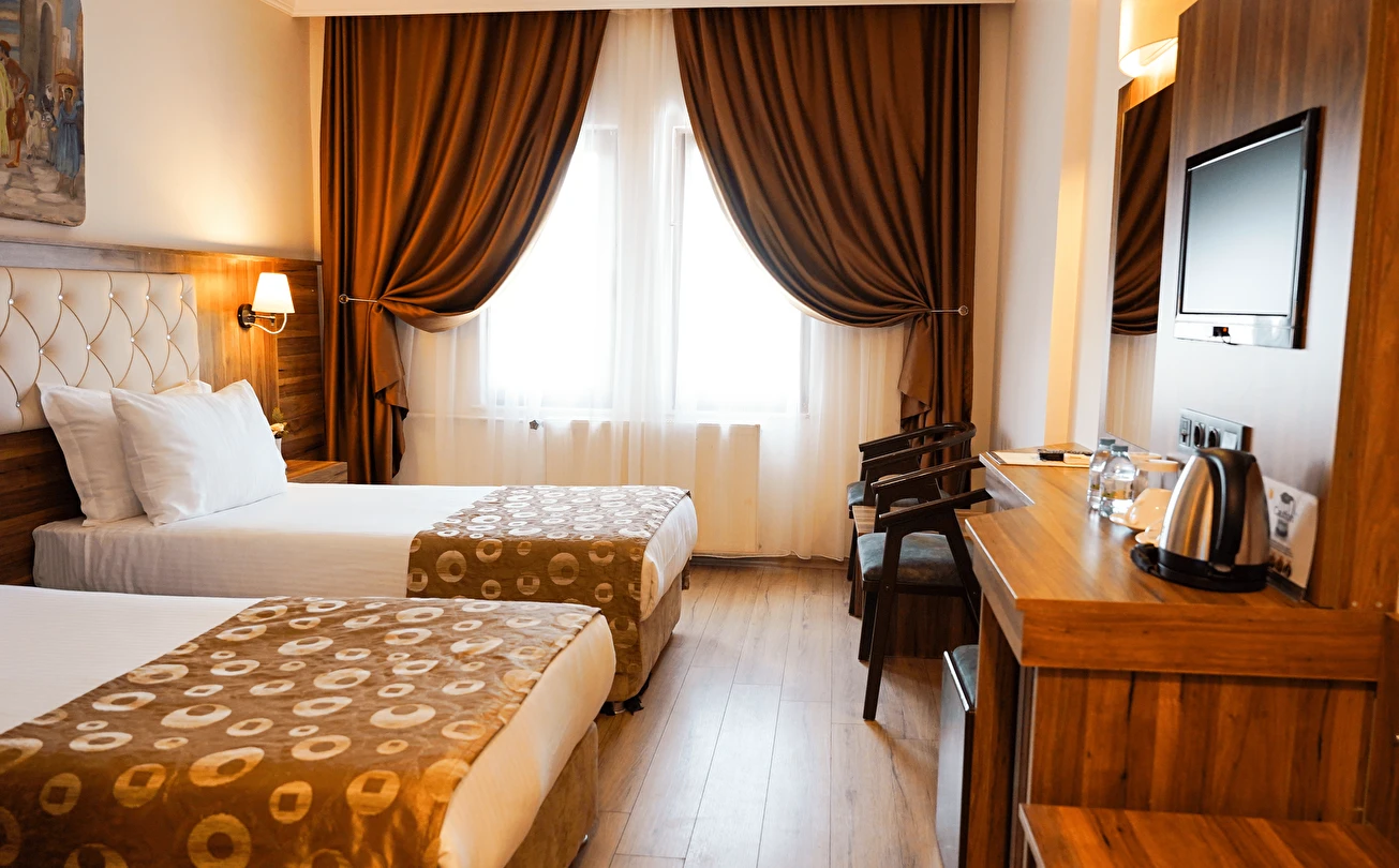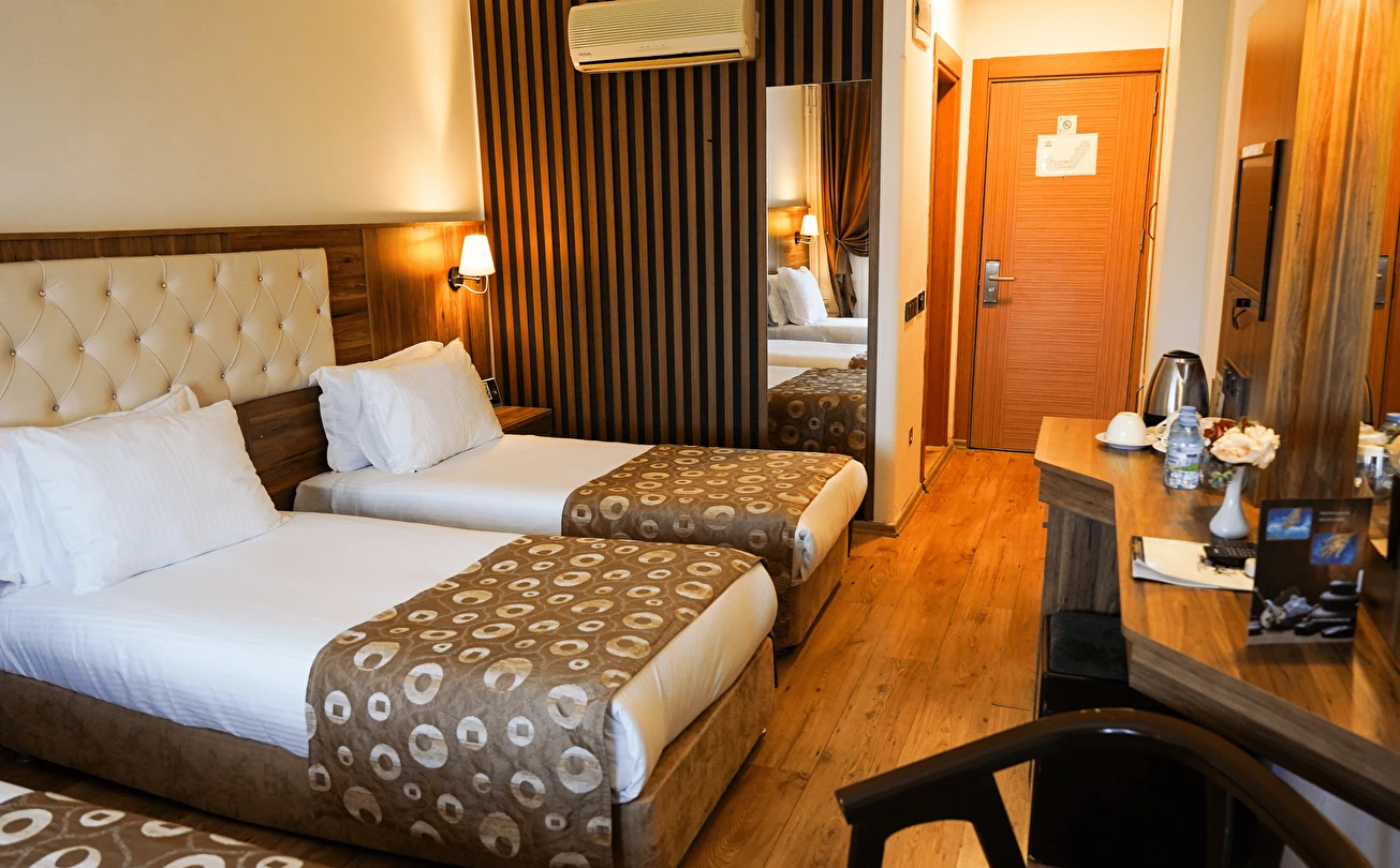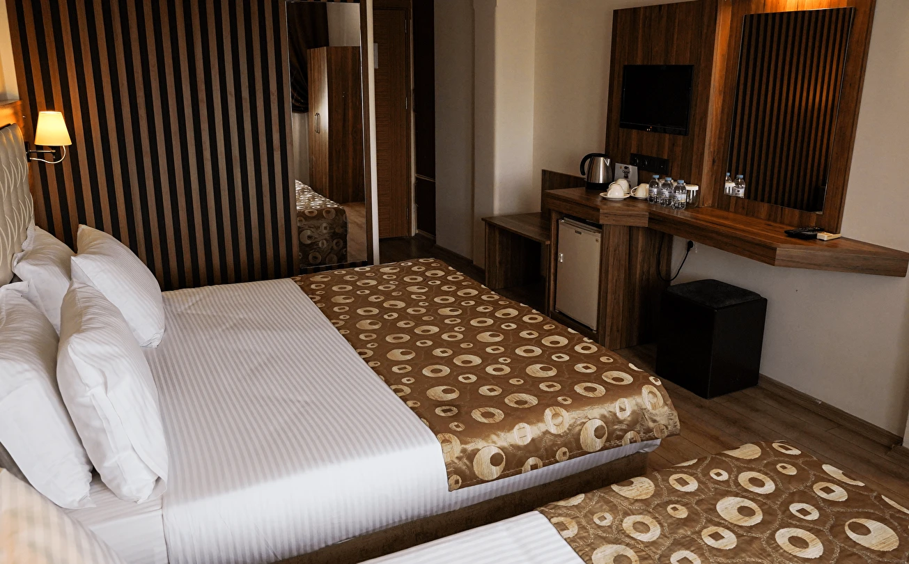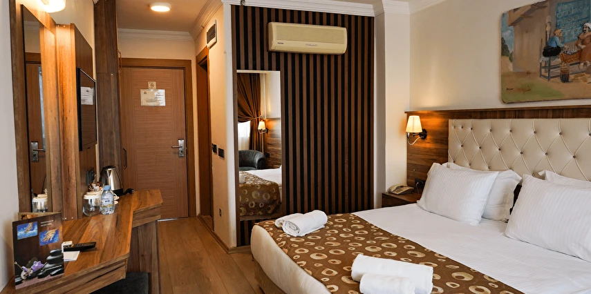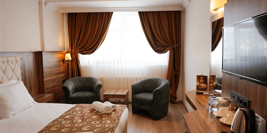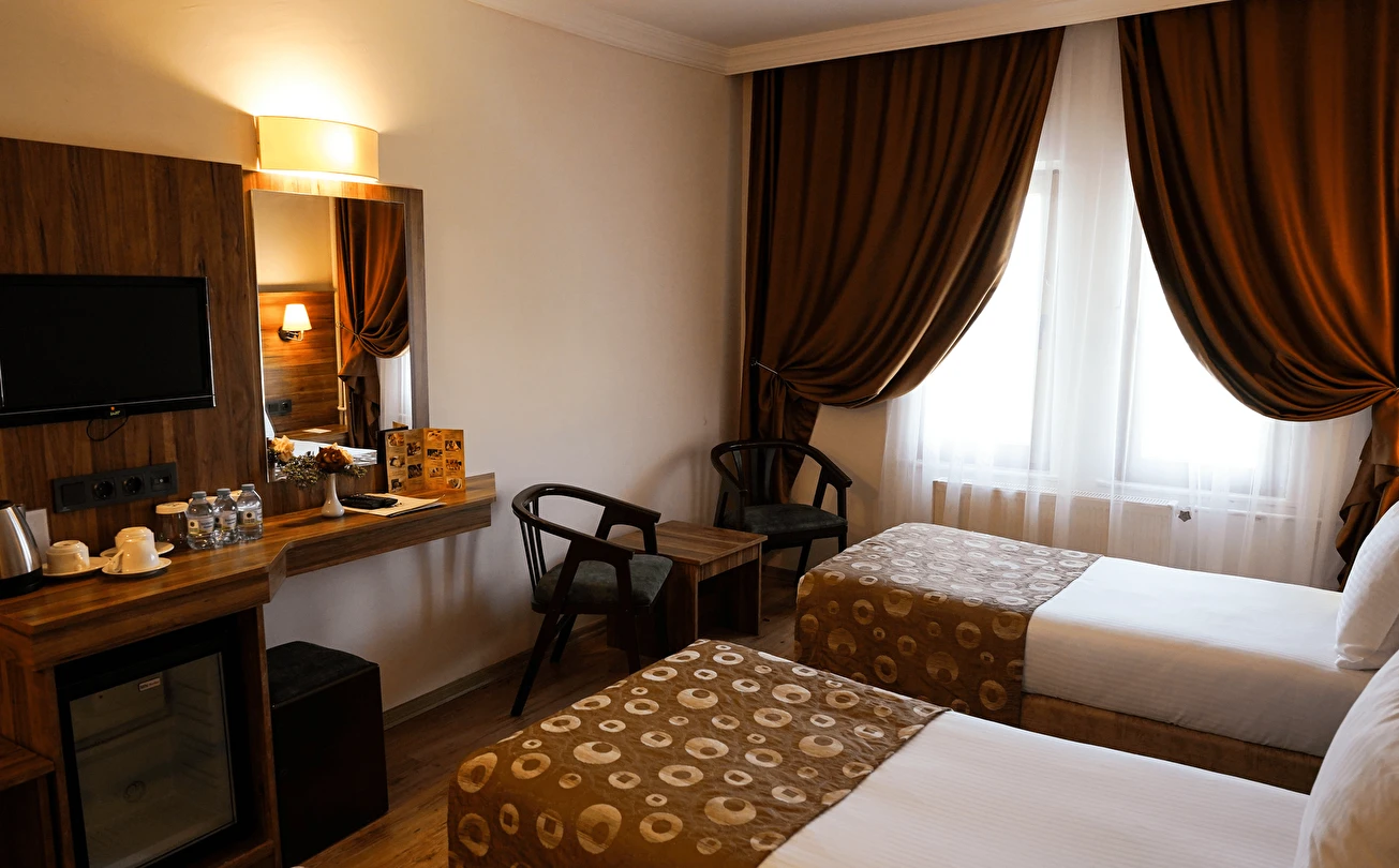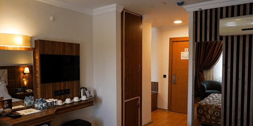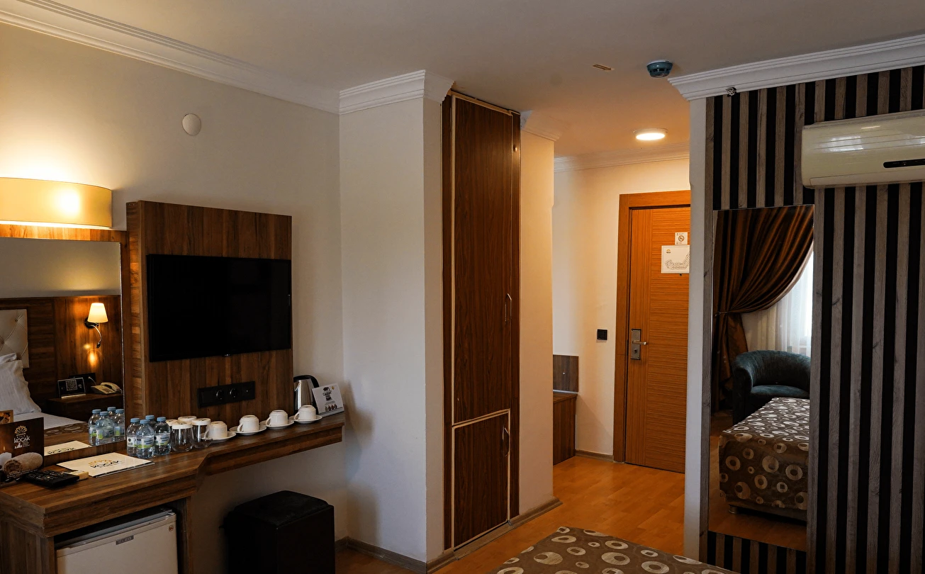 Tüm odalarda çay/kahve, kettle setup ve yanında oda başı günlük 2 su ücretsizdir.