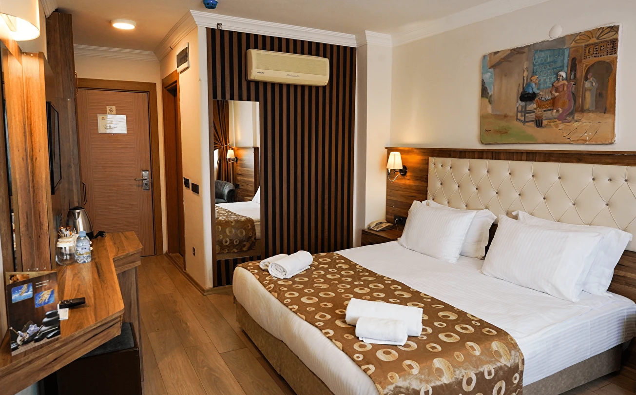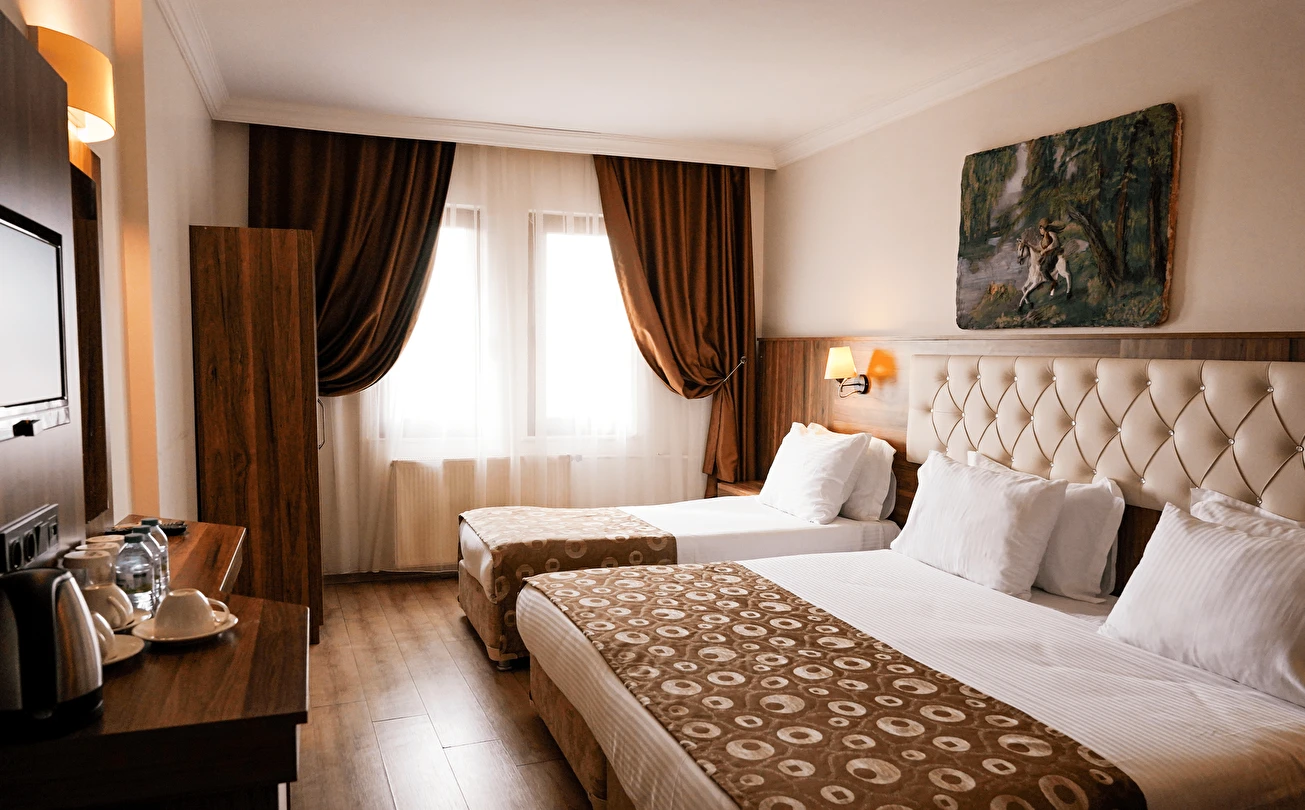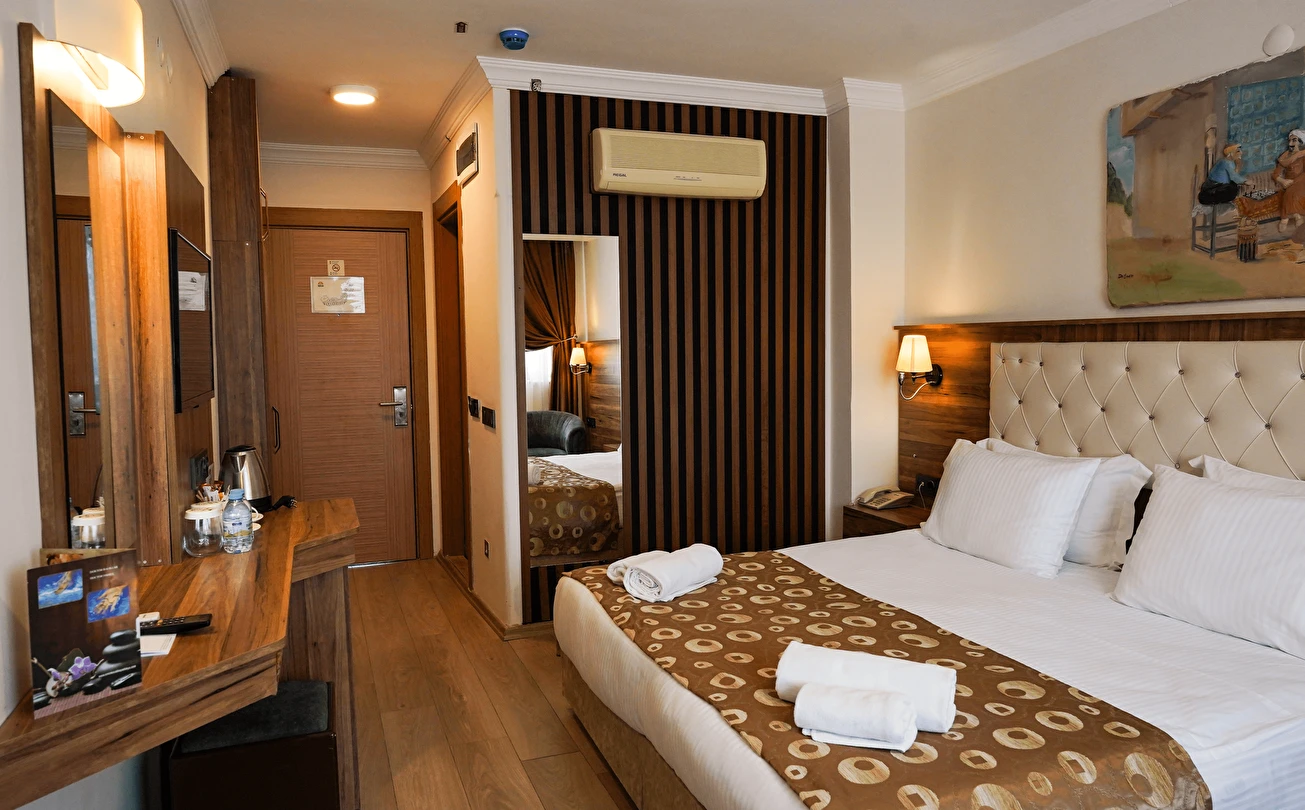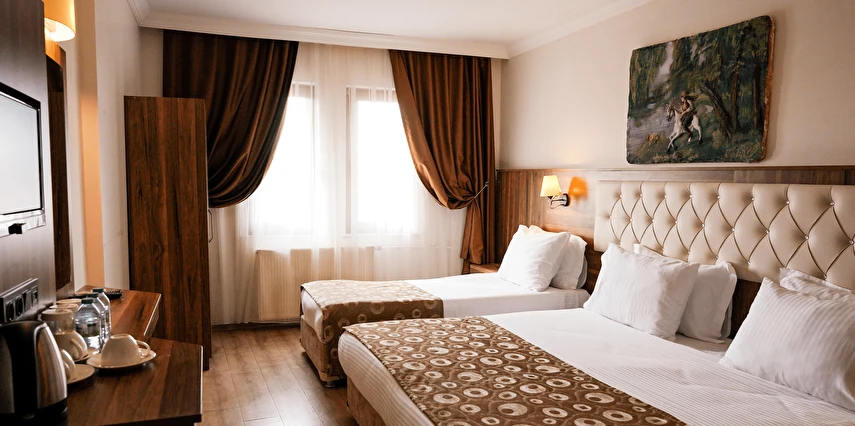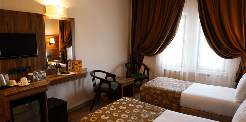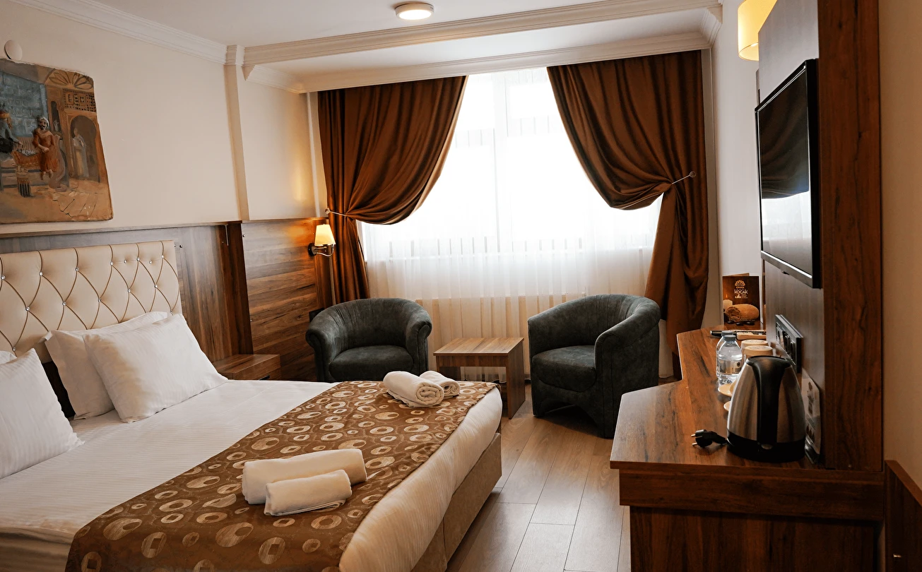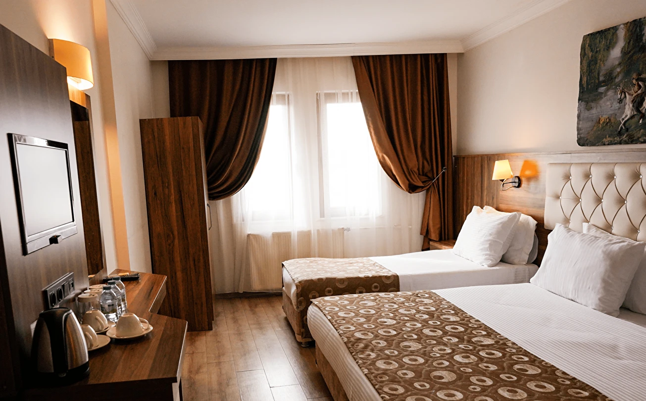 Tüm odalarda çay/kahve, kettle setup ve yanında oda başı günlük 2 su ücretsizdir.