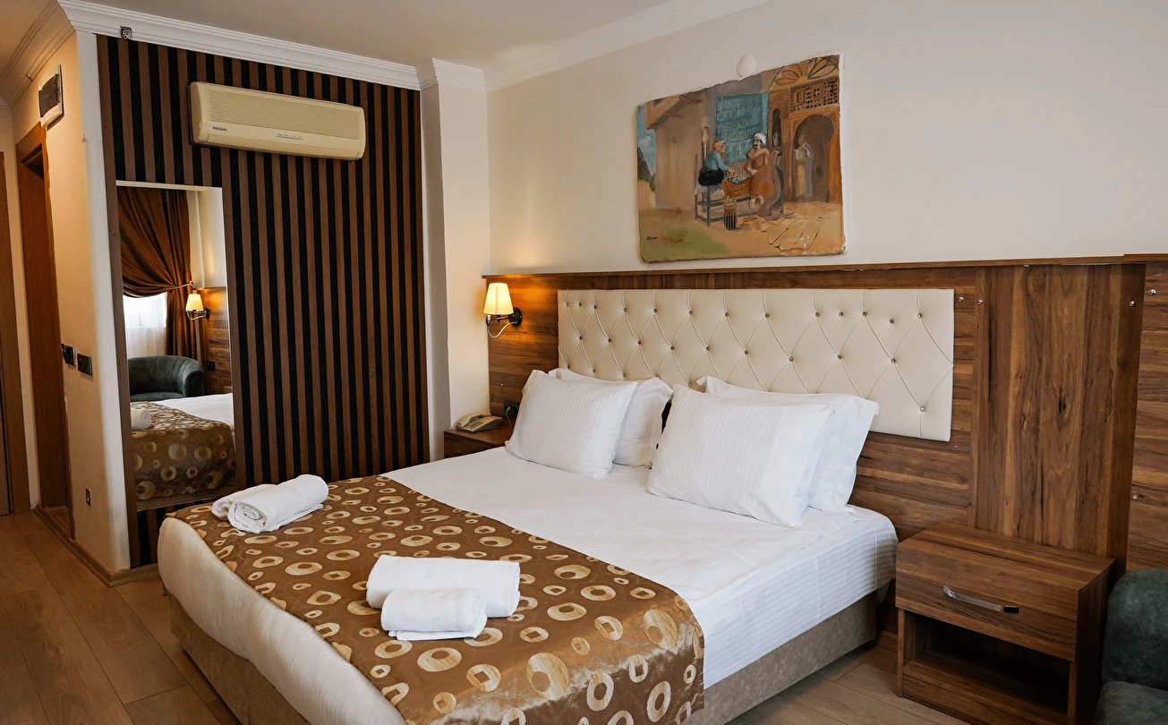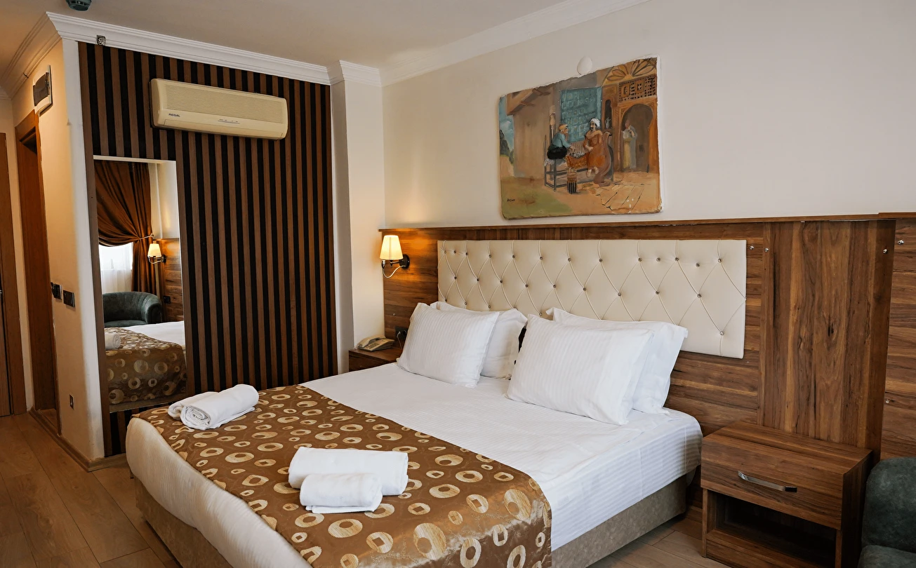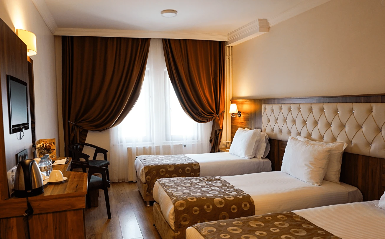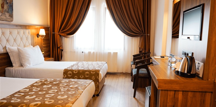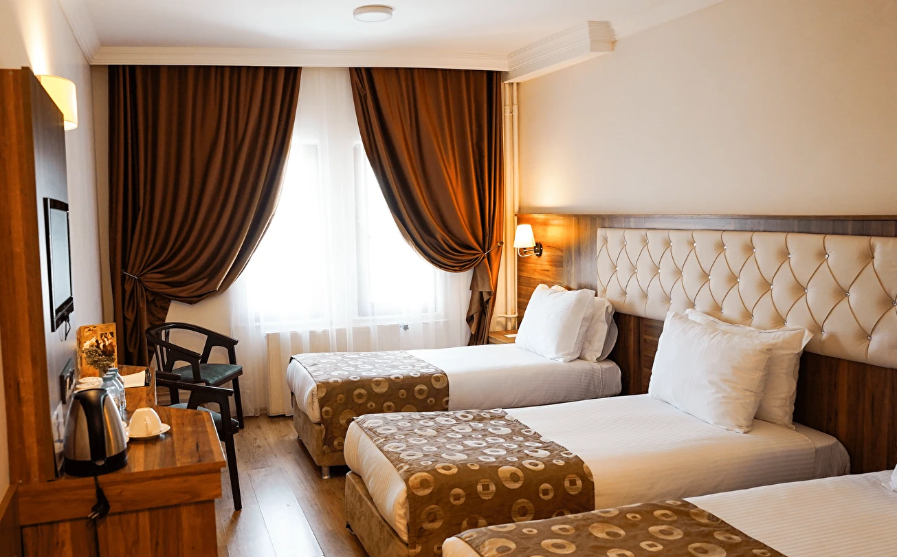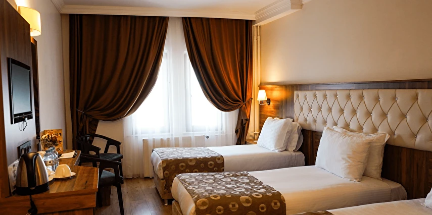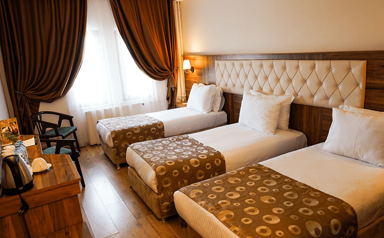 Tüm odalarda çay/kahve, kettle setup ve yanında oda başı günlük 2 su ücretsizdir.