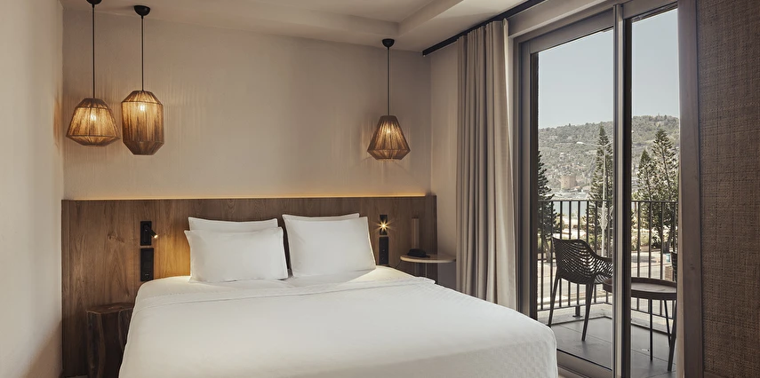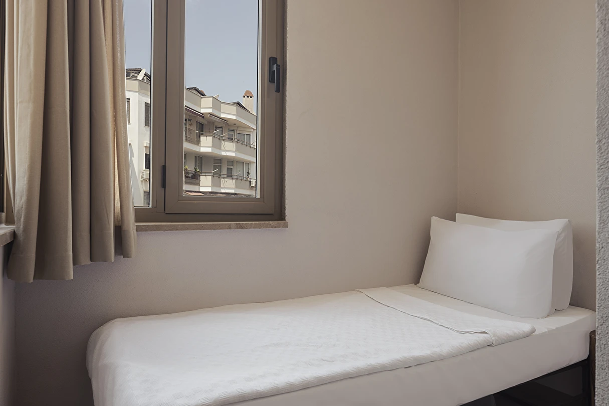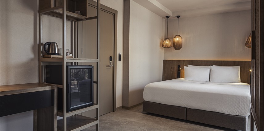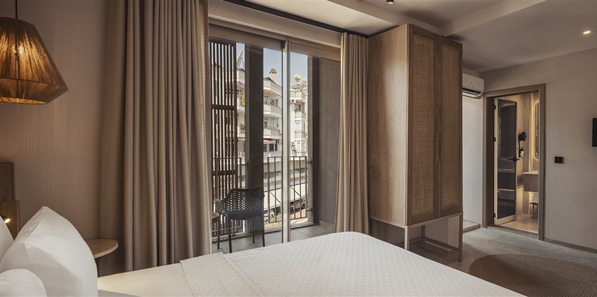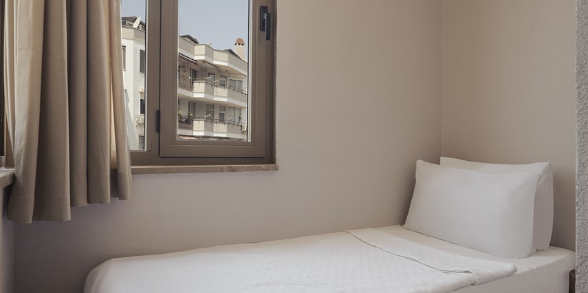 Tesisin odaları modern ve sade bir tasarıma sahip olup; klima, televizyon, minibar ve özel banyo gibi olanaklarla donatılmıştır. Bazı odalar deniz ve Alanya Kalesi manzarasına sahiptir. Konforlu yapısıyla sakin ve keyifli bir konaklama deneyimi sunar.