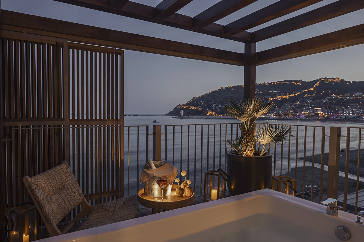 En Vie Beach Boutique Hotel, Alanya sahil şeridinde denize sıfır konumda yer alan şık ve modern bir butik oteldir.