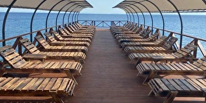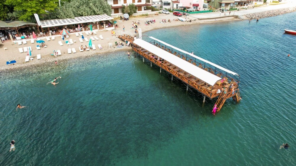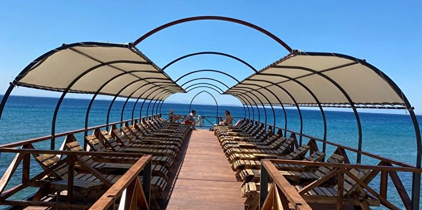 Zeytin ve çam ağaçlarının koyu gölgesinde denize sıfır konumdaki tesisimizde ahşap şezlonglarımızda denizin ve iskelenin keyfini çıkarmanız için sizleri bekliyor.