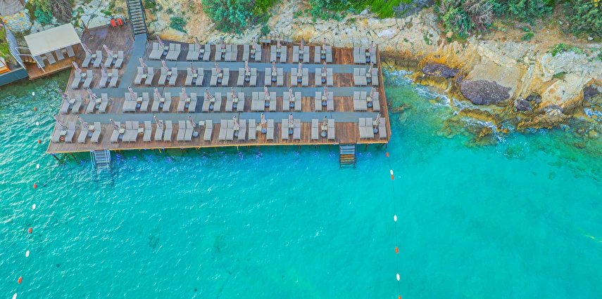 Tesis denize sıfırdır. Fakat plaj mevcut değildir. İskeleden denize giriş sağlanır.