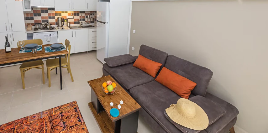 Geniş ve kullanışlı apart daireleri; mutfaklı yaşam alanları, konforlu yatak odaları ve ferah iç mekânlarıyla hem kısa hem de uzun süreli konaklamalar için uygundur. Merkezi konumu sayesinde Kaş çarşısı, plajlar, restoranlar ve kafelere kolayca ulaşabilirsiniz.
