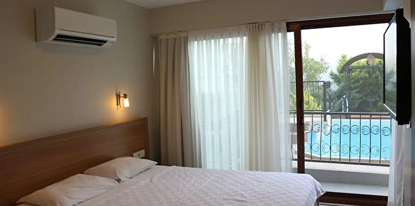 Muğla Erdem Otel, çift konaklamaları için özenle tasarlanmış deniz, bahçe ve havuz manzaralı odalarıyla hizmet veriyor. Misafirlerine ev rahatını sunan otelde, iki kişilik standart oda formatında odalar bulunuyor. Kablosuz internet erişimine sahip odalardaki klima, televizyon, minibar gibi eşyalar misafirlerin konforunu artırıyor. Bazı odalarda ek olarak misafirlerin manzaranın keyfini çıkarabileceği balkonlar da yer alıyor.