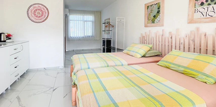 Erendiz Garden Hotel’in içerisinde tek kişilik standart odalar ve çift kişilik standart odalar yer alıyor. Hepsinin duşlu banyosu mevcut. Bunun yanı sıra havlu, terlik, saç kurutma makinesi, banyo malzemeleri, nevresim, gardırop, minibar, düz ekran TV, çalışma masası, klima ve elektrikli ısıtıcı da odaların içinde bulunuyor.