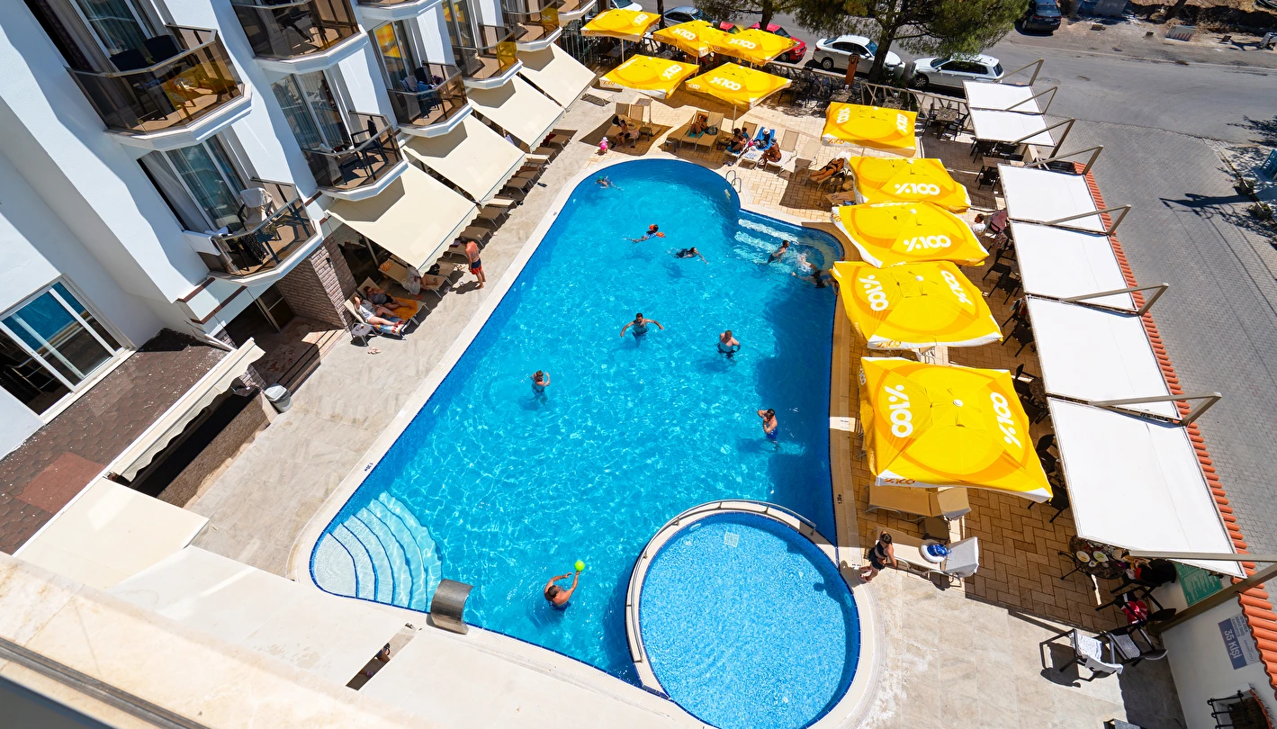 - Şezlong, şemsiye ve minder havuz kenarında ve anlaşmalı plajda ücretsizdir.