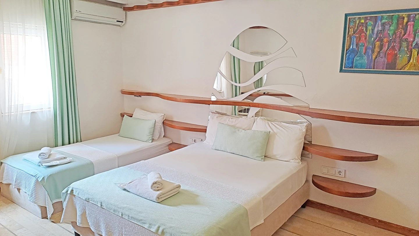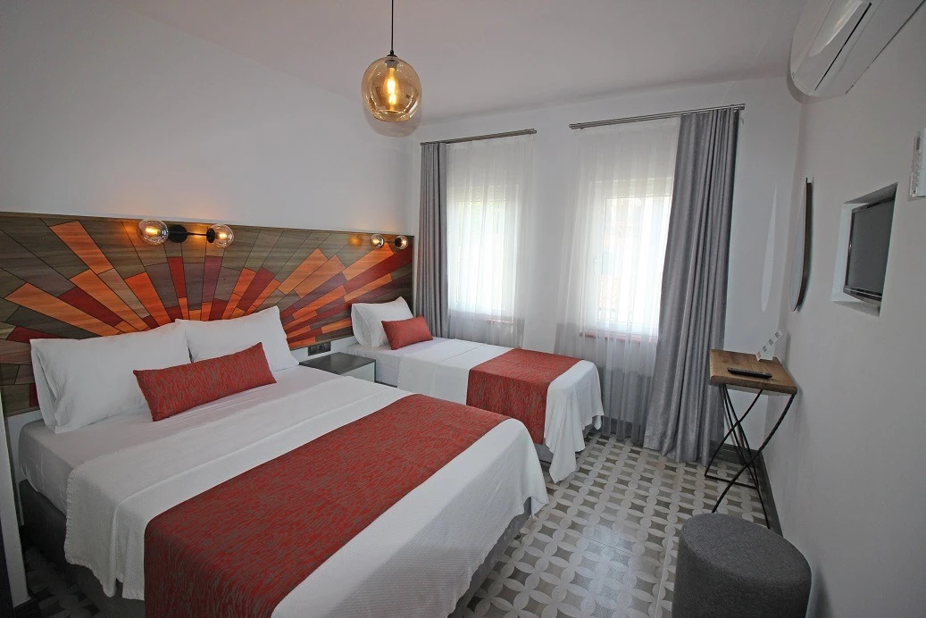 Misafirlerimizin rahatı göz önünde bulundurularak her türlü konforun en ince ayrıntısına kadar seçkin bir kalite ve renk uyumuyla sunulduğu 4 binada 16 oda ve 48 yatak kapasitesi ile Bozcaada Merkezde içinde her türlü donanımı ile hizmet vermekteyiz.