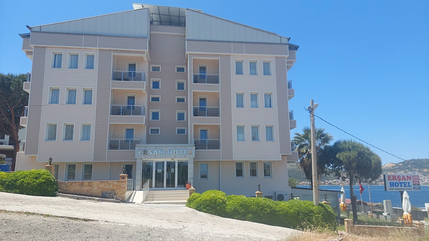 Ersan Hotel; Foça Adaları, Foça Athena Tapınağı, Foça Frigya Tepesi, Foça Dış Kale, Kybele Açıkhava Tapınağı, Foça Antik Tiyatrosu gibi sembolik ve merkezi yerlere yakın konumda yer almaktadır. Ersan Hotel, sade ve rahat mimariyle dizayn edilen otel odaları ile misafirlerine konaklama hizmeti vermektedir.