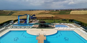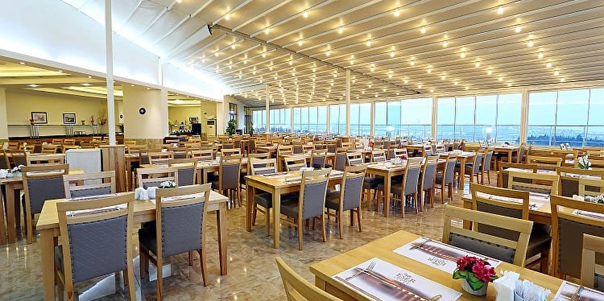 Tesis konuklarına zengin açık büfe kahvaltı ile birlikte, deniz ve doğa manzaralı alakart restoranda dünya mutfaklarından lezzetler ve Loby Bar'da gün boyunca içki servisi imkanı vermektedir. Ayrıca tesis genelinde kapalı havuz, açık havuz, üç kaydıraklı aquapark, oda servisi, çamaşırhane, kuru temizleme, SPA, kuaför, market, araç kiralama, havalimanı transfer hizmeti gibi olanaklar da sunmaktadır.