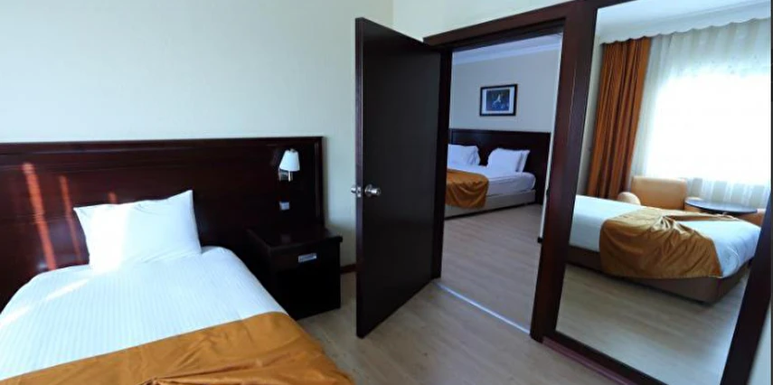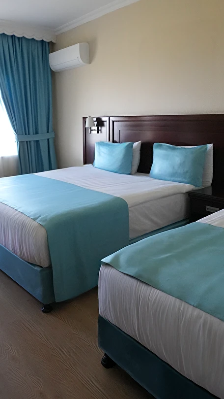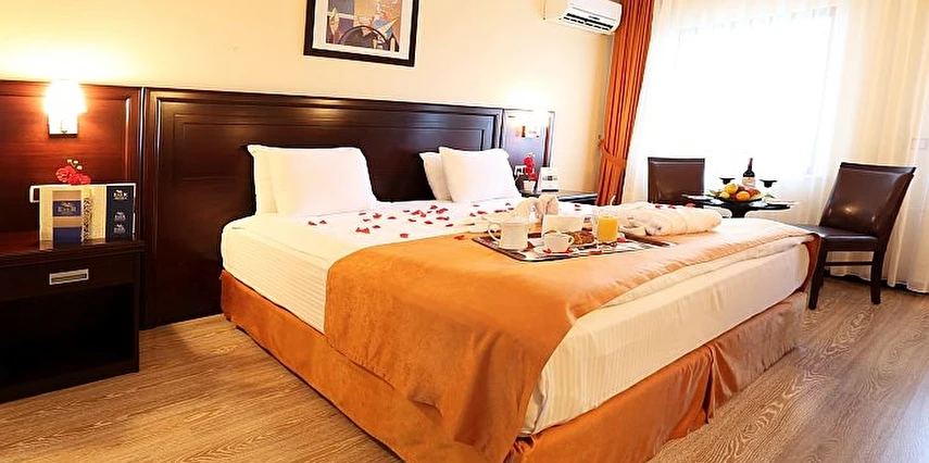 Daha Fazla GösterEser Diamond Hotel & Convention Center, misafirlerine sade ve modern dekore edilmiş konforlu odalarında keyifli bir tatil imkanı sunuyor. Tesisin 218 odası mevcut. Odalarda; minibar, telefon, klima, banyo, duş, WC, su ısıtıcı- kettle, televizyon, uydu TV, saç kurutma makinesi ve kablosuz internet gibi olanaklar bulunuyor.
