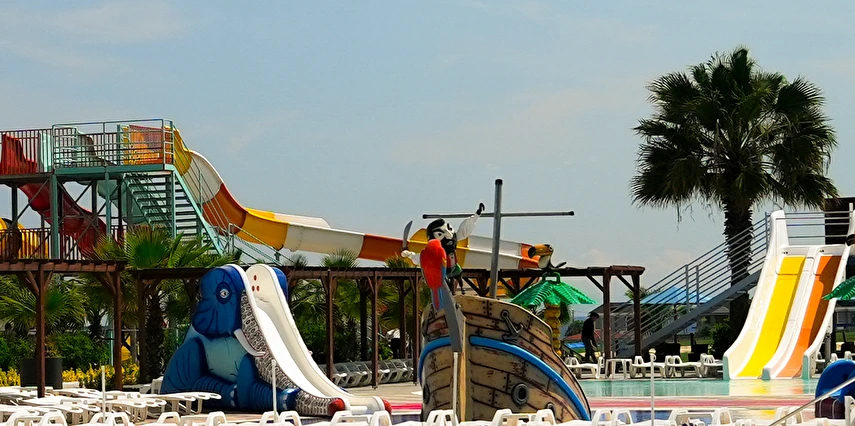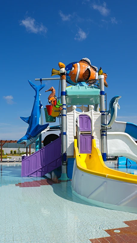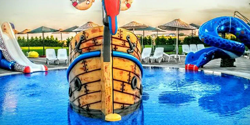 Ayrıca tesis genelinde kapalı havuz, açık havuz, üç kaydıraklı aquapark, oda servisi, çamaşırhane, kuru temizleme, SPA, kuaför, market, araç kiralama, havalimanı transfer hizmeti gibi olanaklar da sunmaktadır.