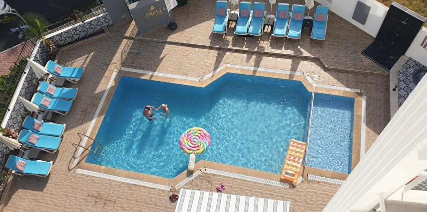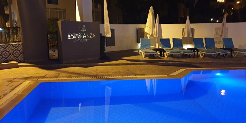 Modern dekorasyonu ve doğal güzellikler arasındaki konumu ile dikkat çeken Esperanza Hotel plaja alternatif olarak misafirlerine açık yüzme havuzu ile hizmet veriyor. Havuz etrafında şezlong ve şemsiyeler mevcuttur. Sahile 500 metre mesafede yer alan tesiste, her sabah farklı lezzetlerle dolu açık büfe kahvaltı servis ediliyor. Türk ve dünya mutfakların lezzetlerinin tadına bakmak isteyen misafirler, tesise yürüme mesafesinde bulunan restoranlara rahatça ulaşabilir. Modern dekorasyonu ve doğal güzellikler arasındaki konumu ile dikkat çeken Esperanza Hotel, plaja alternatif olarak misafirlerine açık yüzme havuzu ile hizmet veriyor. Havuz etrafında şezlong ve şemsiyeler mevcut. Sahile 500 metre mesafede yer alan tesiste, her sabah farklı lezzetlerle dolu açık büfe kahvaltı servis ediliyor.