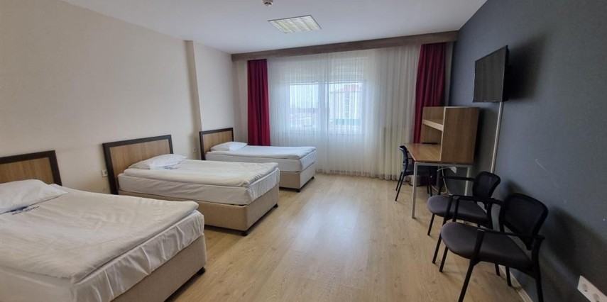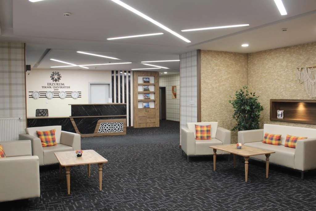 Erzurum Teknik Üniversitesi Konukevi misafirleri için konforlu ve güvenli bir konaklama imkânı sunar. Modern yapısı ve ulaşım kolaylığı ile dikkat çeken konukevinde, farklı ihtiyaçlara hitap eden oda seçenekleri bulunmaktadır. Odalarda yatak, çalışma masası, sandalye, elbise dolabı, mini buzdolabı, televizyon, Wi-Fi internet erişimi ve özel banyo (duş, lavabo, tuvalet) gibi temel ihtiyaçlara yönelik tüm eşyalar yer almaktadır. Isıtma sistemi merkezi olup, kış aylarında Erzurum’un soğuk havasına karşı konforlu bir ortam sağlar. Ayrıca ortak kullanım alanlarında; 24 saat açık resepsiyon, güvenlik hizmeti, otopark, dinlenme salonu ve kahvaltı imkânı sunulmaktadır.