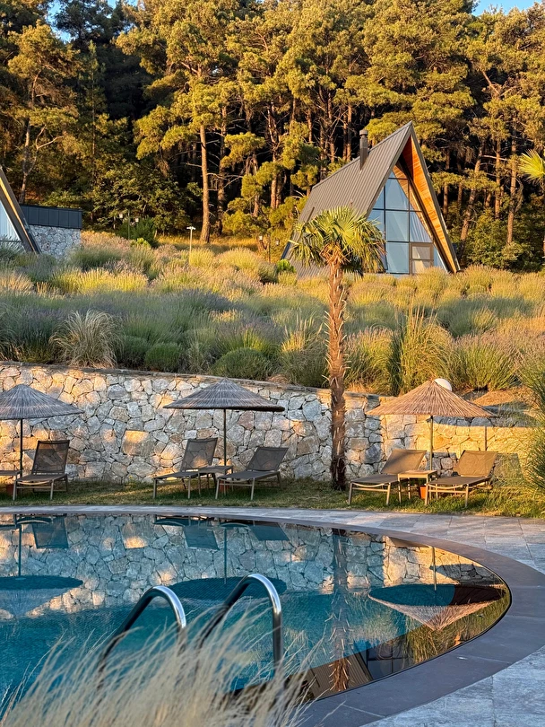 Benzersiz mimarisi, doğal materyallerin harmonisi ile her detayda aşk var. Kendinizi ait olduğunuz yerde hissettiren, oksijen seviyesi ve saf enerjisi ile bambaşka bir deneyim yaşatan eşsiz doğasına kapılıyorsunuz. Eşsiz lavanta bahçesi eşliğinde kahvenizi yudumlarken gün batımının tadı bir başka...
