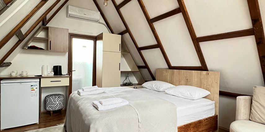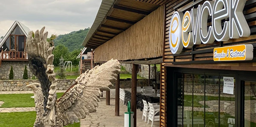 Daha Fazla GösterKeyifli bir hafta sonunun en iyi adresi Evcek! Evcek Bungalov 33.000 m² arazi içinde kuruludur. Tesisimizde çocuklarımız ve gençlerimiz için gözetmenler nezaretinde Midilli atı, çocuk parkı eğlenceleri, ATV Motor gezintileri aktiviteleri yapılmaktadır. Çocuklarımız için çamur oyunları aktivitelerine çok özen gösterildiğini belirtmek isteriz. İşletmemizin bahçesinde bulunan köy usulü kümeslerimizden sabah yumurtanızı kendiniz toplayabilirsiniz. Tarımsal faaliyetleri özlemi olanlar için fındık bahçelerimizde ve hobi bahçelerimizde, böğürtlen, ısırgan otu, kaldirik, salatalık, domates vb. gibi, sebze ve meyveleri kendiniz toplayabilir ve istediğiniz gibi doğal gıda ile beslenebilirsiniz. Evcek Köy Yaşam Alanımızda Sabah Köy Kahvaltısı ve Akşam yemeği sipariş üzerine göre hazırlanıp müşterilerimize özenle sunulmaktadır.