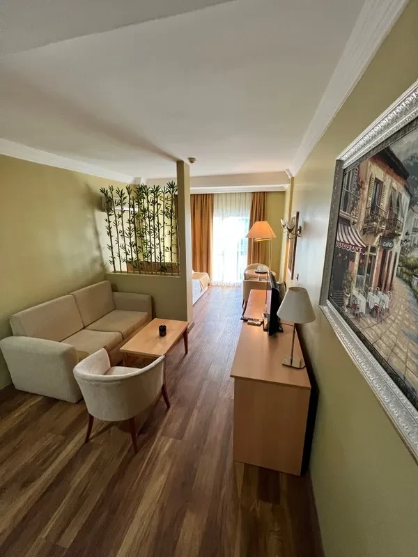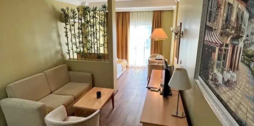 Tüm odalarımızda mini bar, TV (Samsung) ve klima mevcuttur, konforunuz için her detay düşünülmüştür.