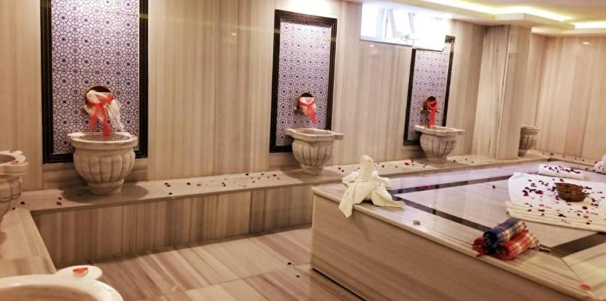 Otelimiz içerisinde Spa bölümü, 400 metrekare büyüklüğünde hamam, sauna, buhar odası, iki kese odası, köpük odası, yedi masaj odası ika adet kişiye özel(vip) bölüm ve şok havuzu ile ruhunuzu ferahlatacağınız harika bir ortam dizayn edilmiştir