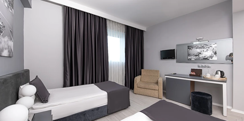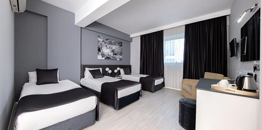 Odalarımızda; klima, minibar, tv, kasa, saç kurutma makinesi, ücretsiz wireless(internet) mevcuttur. Misafirlerimize geniş ve ferah bir konaklama imkanı sunarken sağlık önlemlerini eksiksiz bir şekilde dikkate almaktayız.