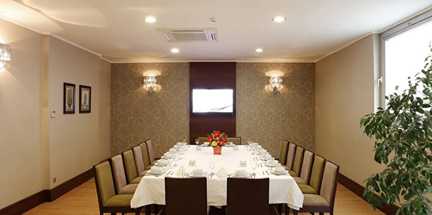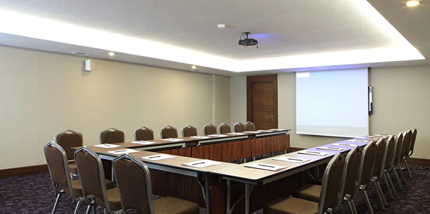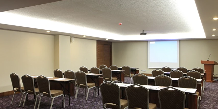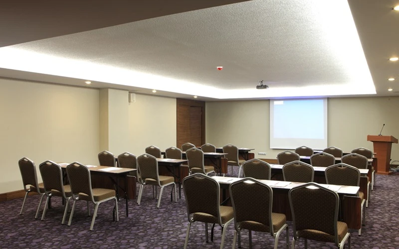 Eyüboğlu Hotel, iş toplantılarınız ve özel organizasyonlarınız için tam donanımlı salonlarıyla profesyonel çözümler sunar.