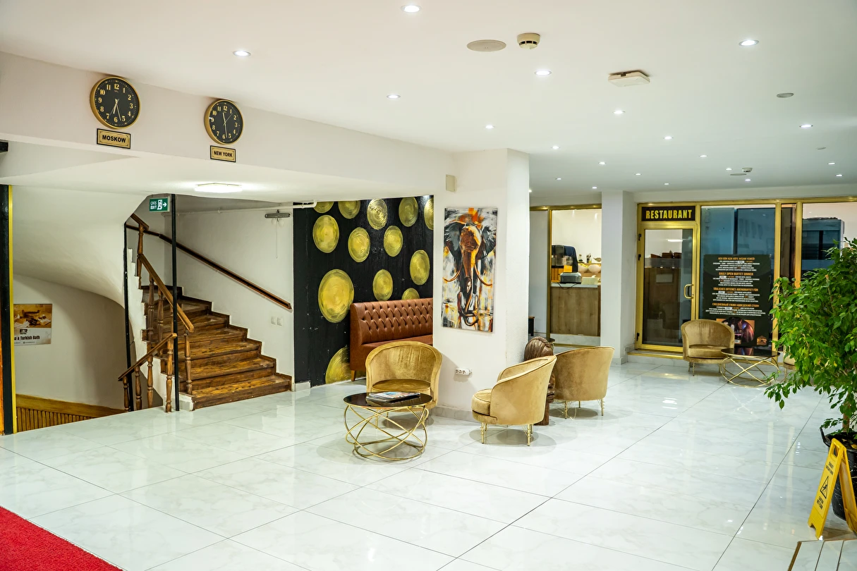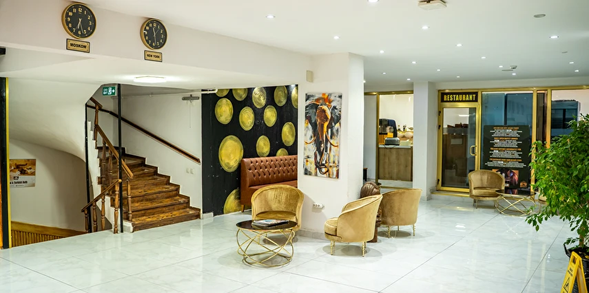 Lobi & Dinlenme: İş görüşmelerinizi yapabileceğiniz veya günün yorgunluğunu kahvenizle atabileceğiniz modern lobi alanı.